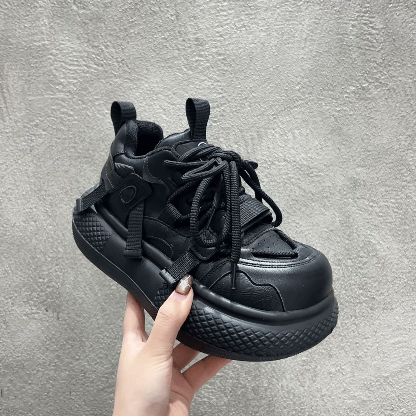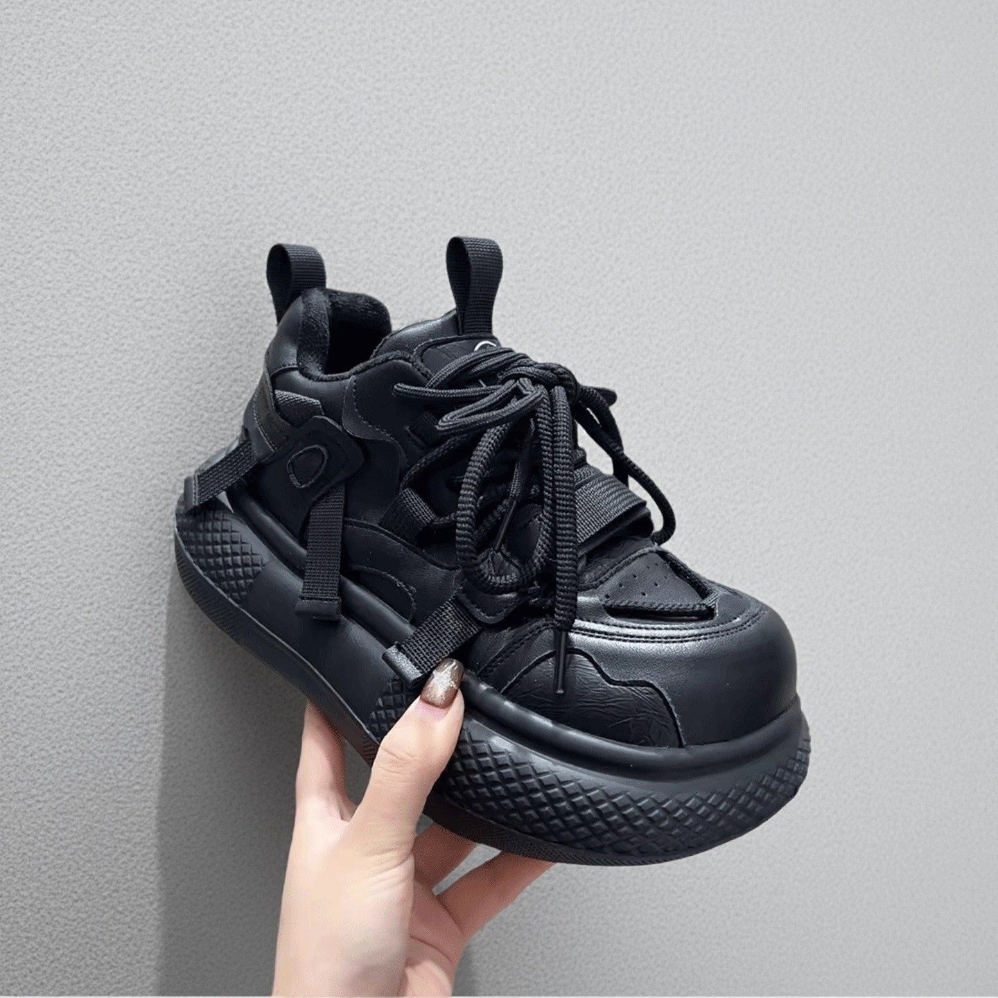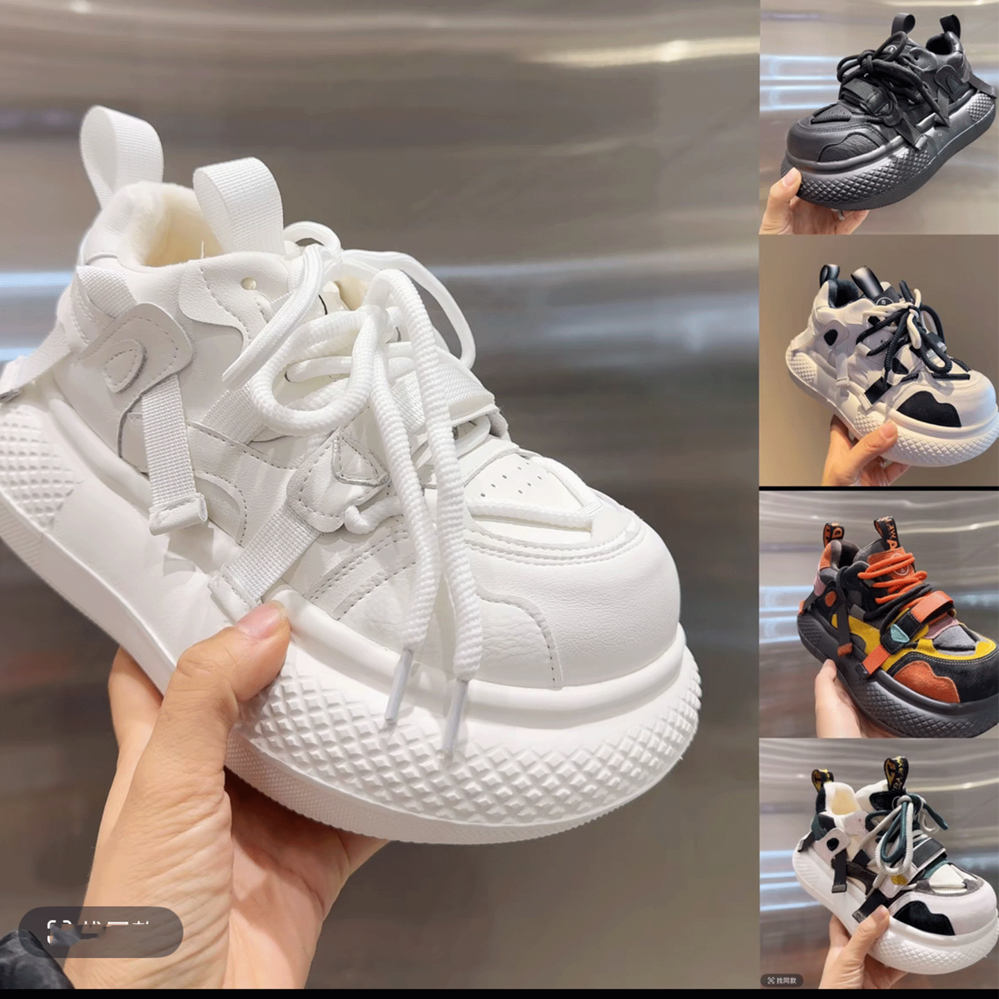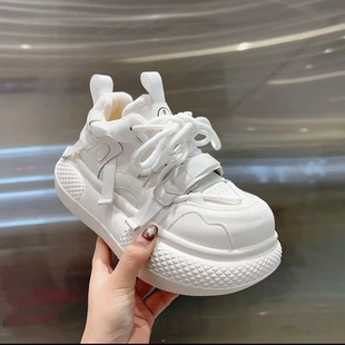 子 增高厚底加绒保暖女棉鞋 丑萌风撞色厚底运动鞋 女系带休闲老爹鞋