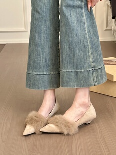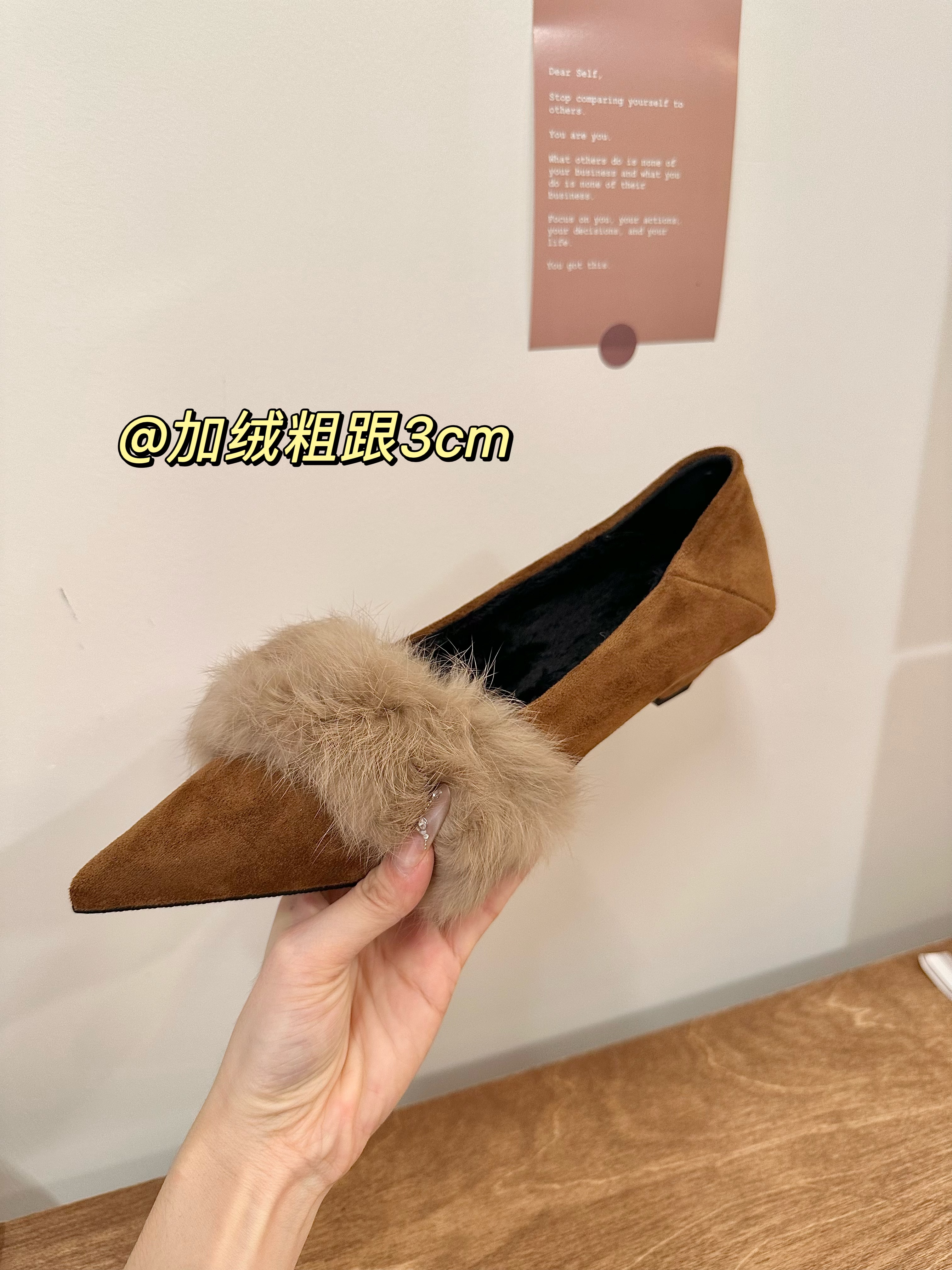 浅口玛丽珍女鞋 达芙妮加绒格纹单鞋 毛毛鞋 秋冬保暖棉鞋 女2025新款