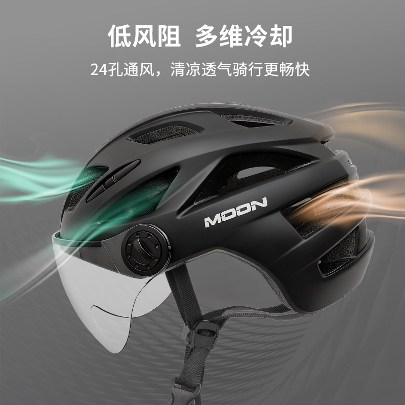 3C认证隐藏内推镜片头盔女电动车骑行半盔冬季 围脖电瓶车安全帽男