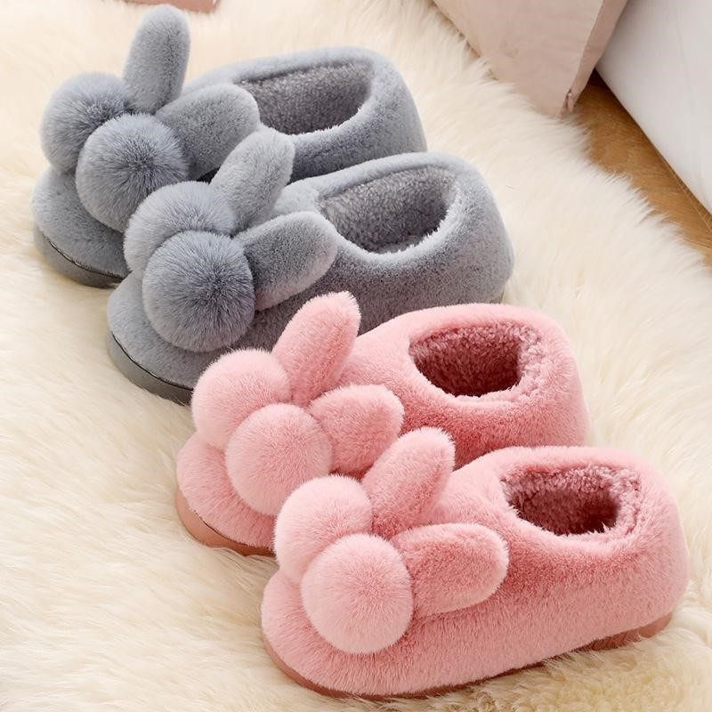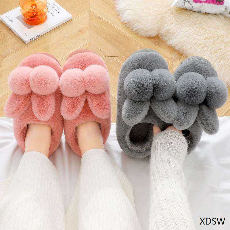 毛绒女士室内家居加厚底防滑蝴蝶结毛毛鞋 棉拖鞋 保暖 冬季 2025新款
