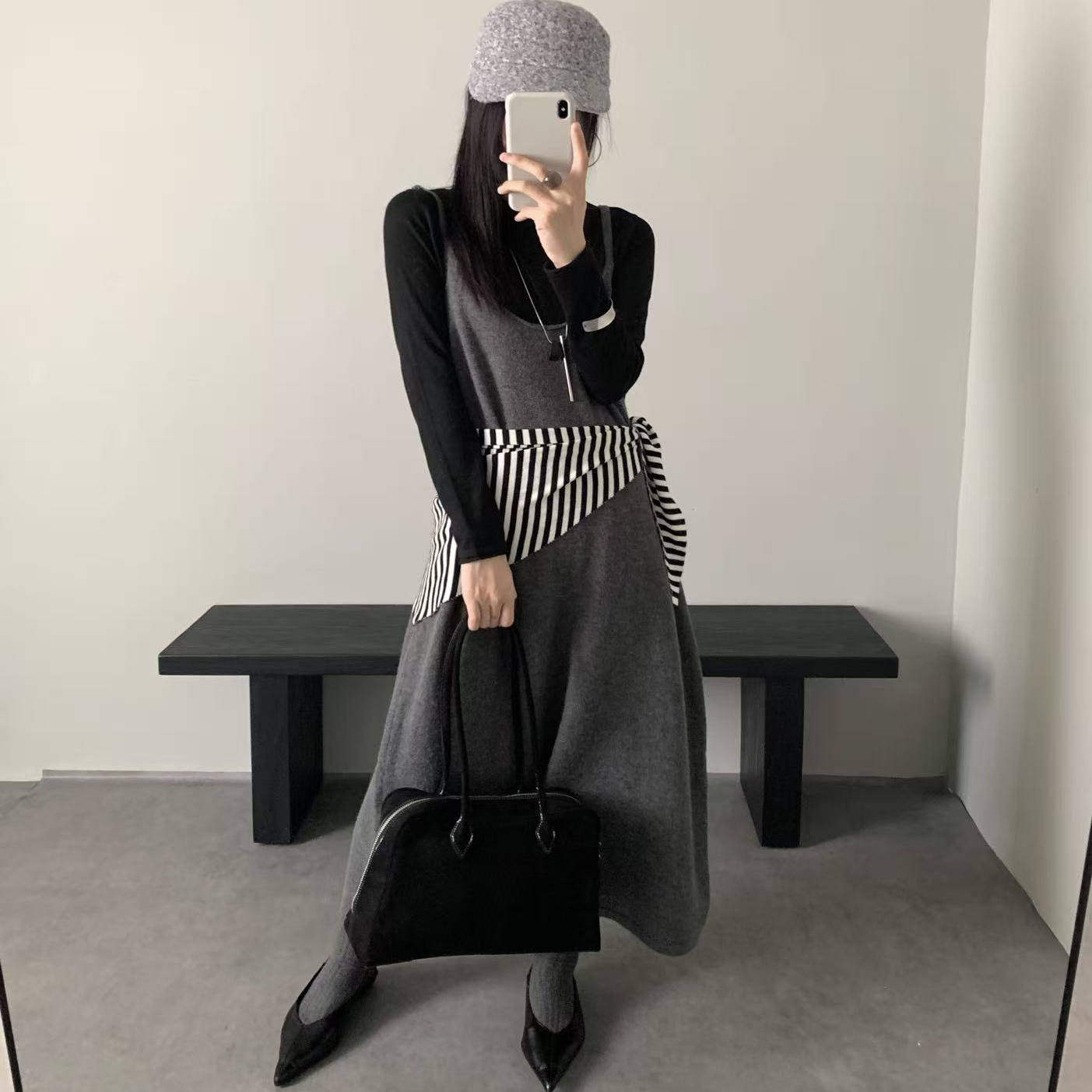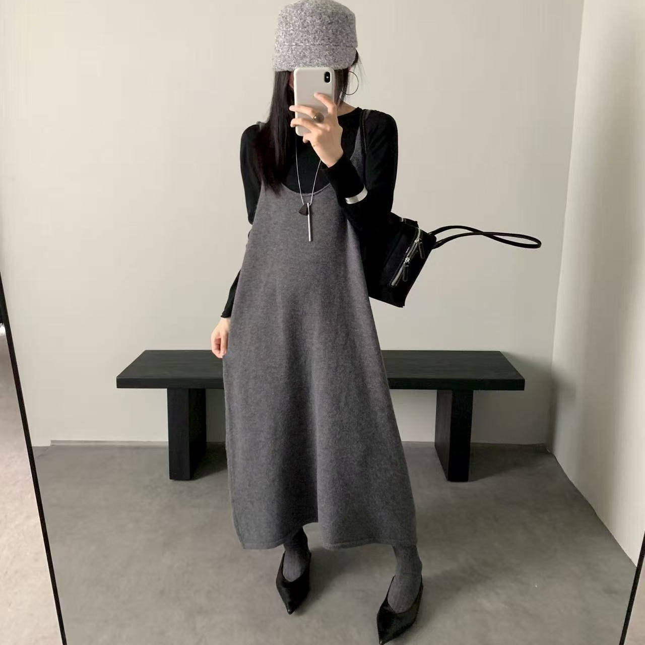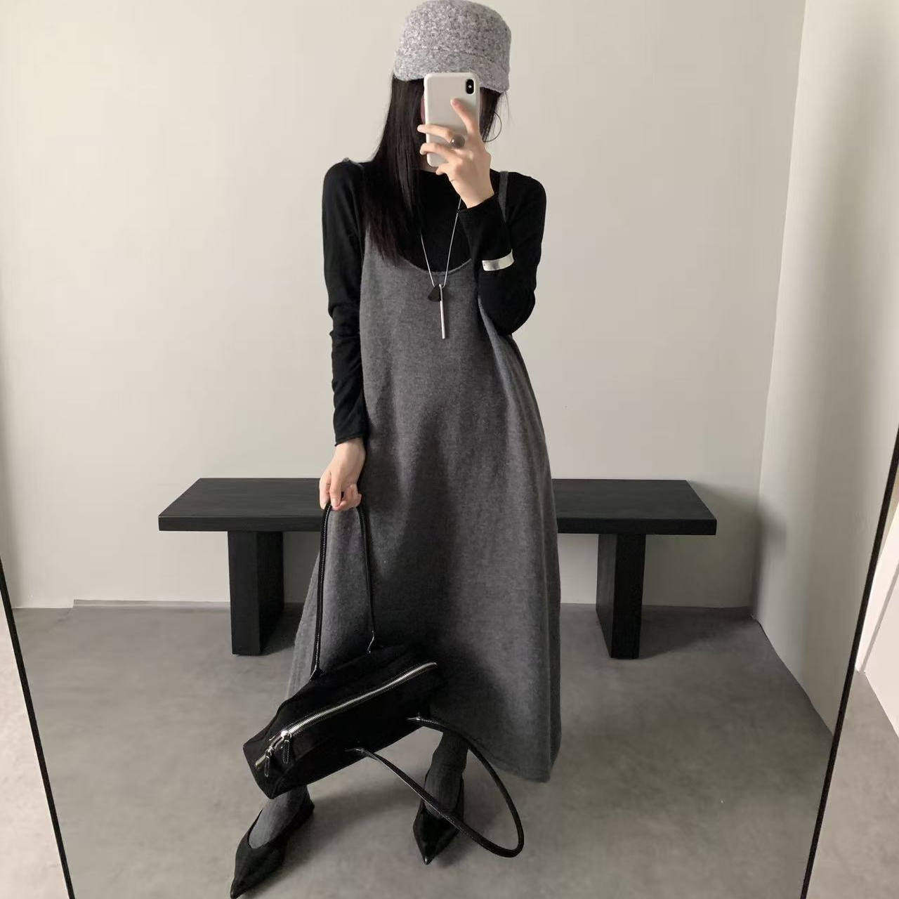 BATTLEMIND秋冬ins风收腰显瘦修身 针织高级感灰色裙 连衣裙女长款