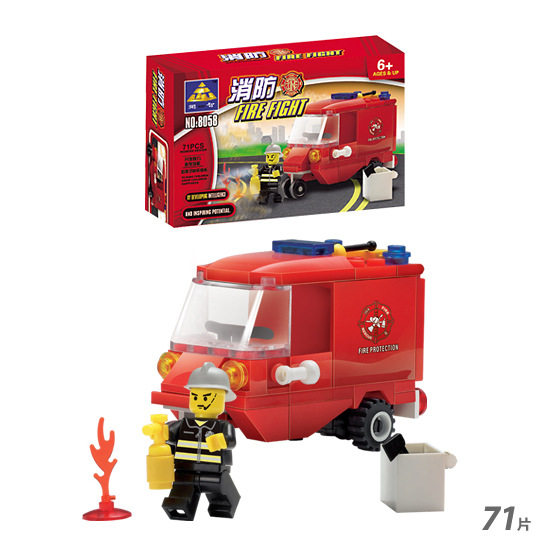 新款 积木益智儿童玩具KY8058普通塑料积木 开智系列小消防车拼装