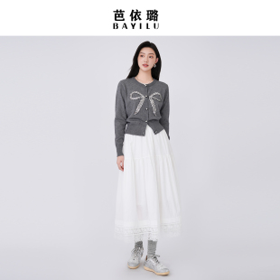 高腰法式 半身裙时尚 蕾丝拼接A字百搭中长裙女 新款 芭依璐2026春季