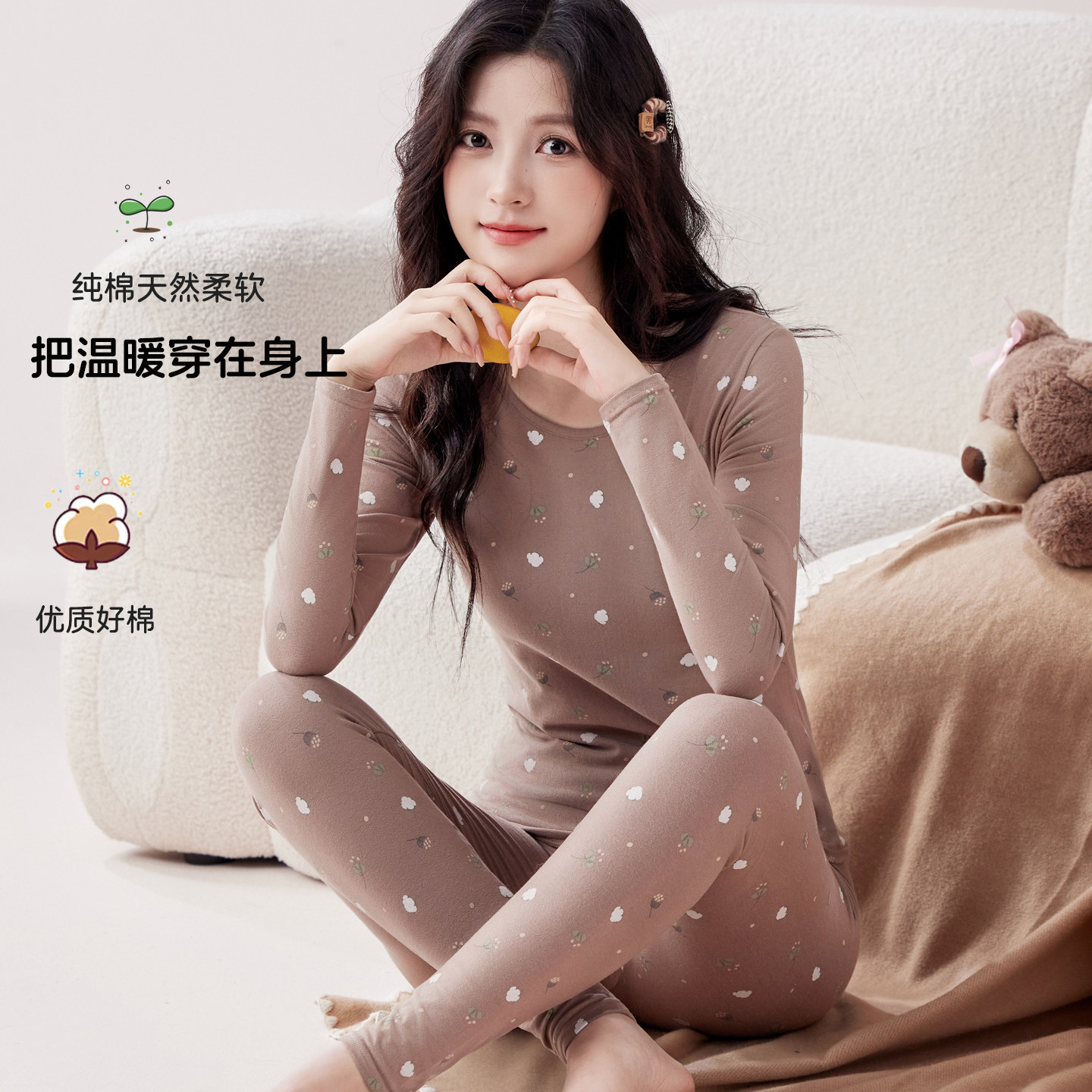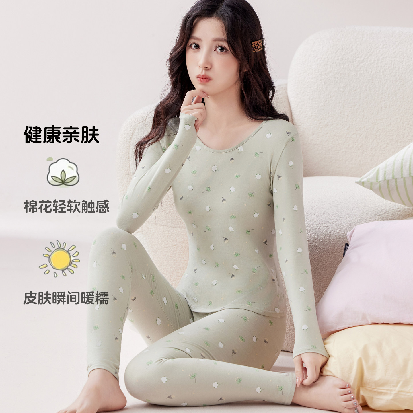 上衣 2025秋冬带胸垫修身 蚕丝羊绒保暖内衣女加绒加厚秋衣秋裤 套装