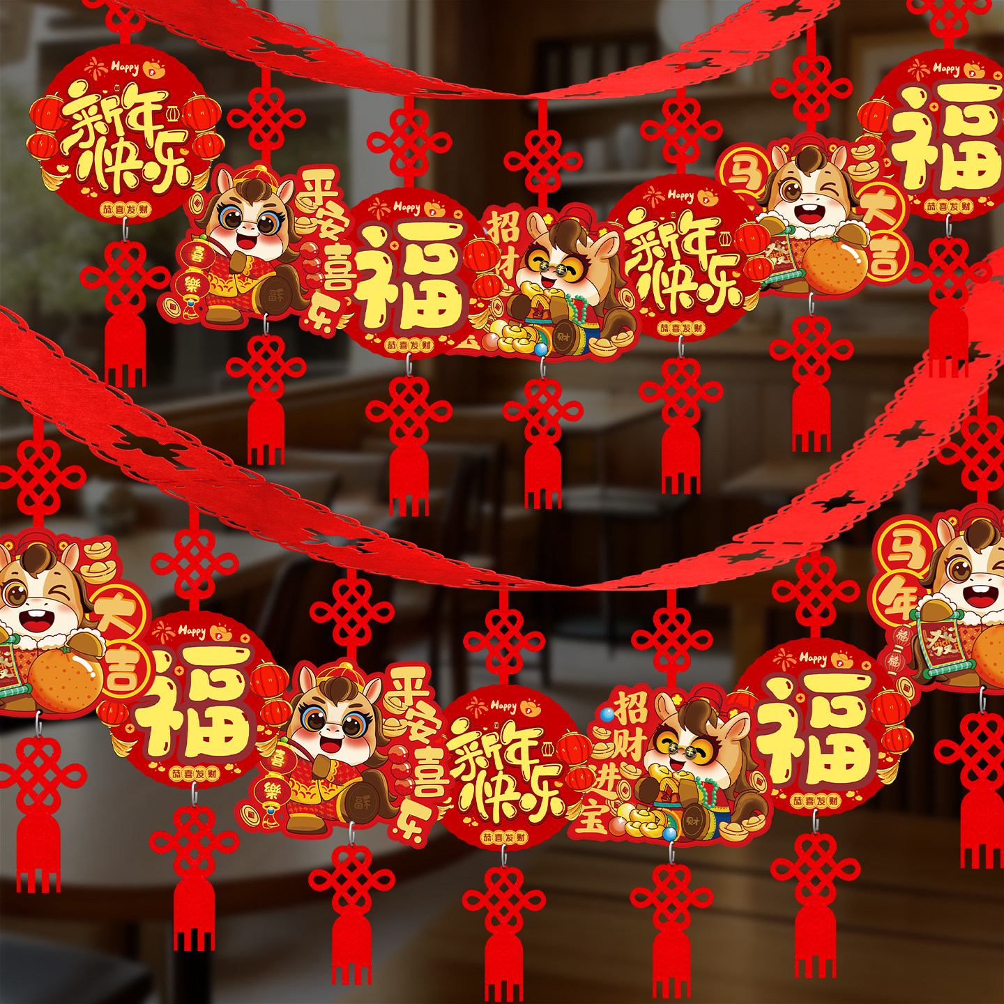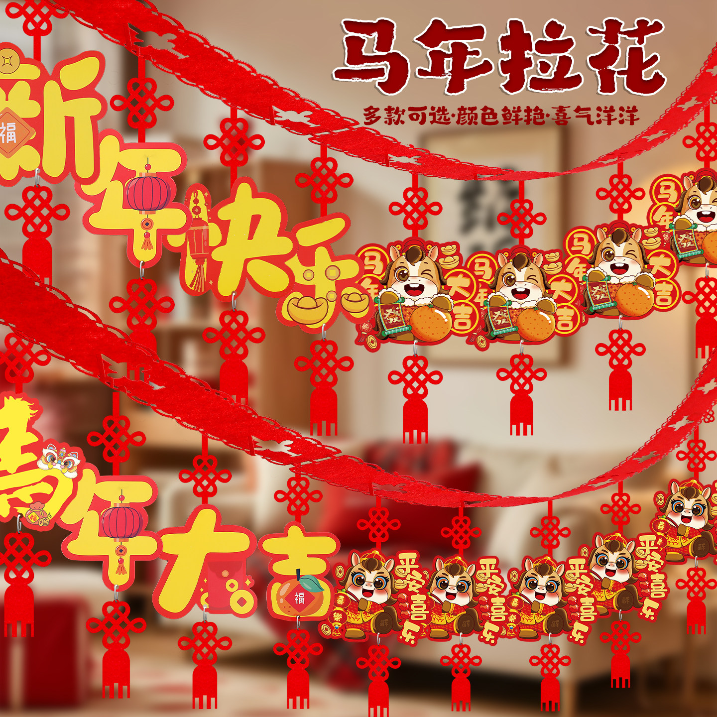 新年装 旦挂饰2026马年拉花过年幼儿园教室氛围布置 饰品拉旗挂件元