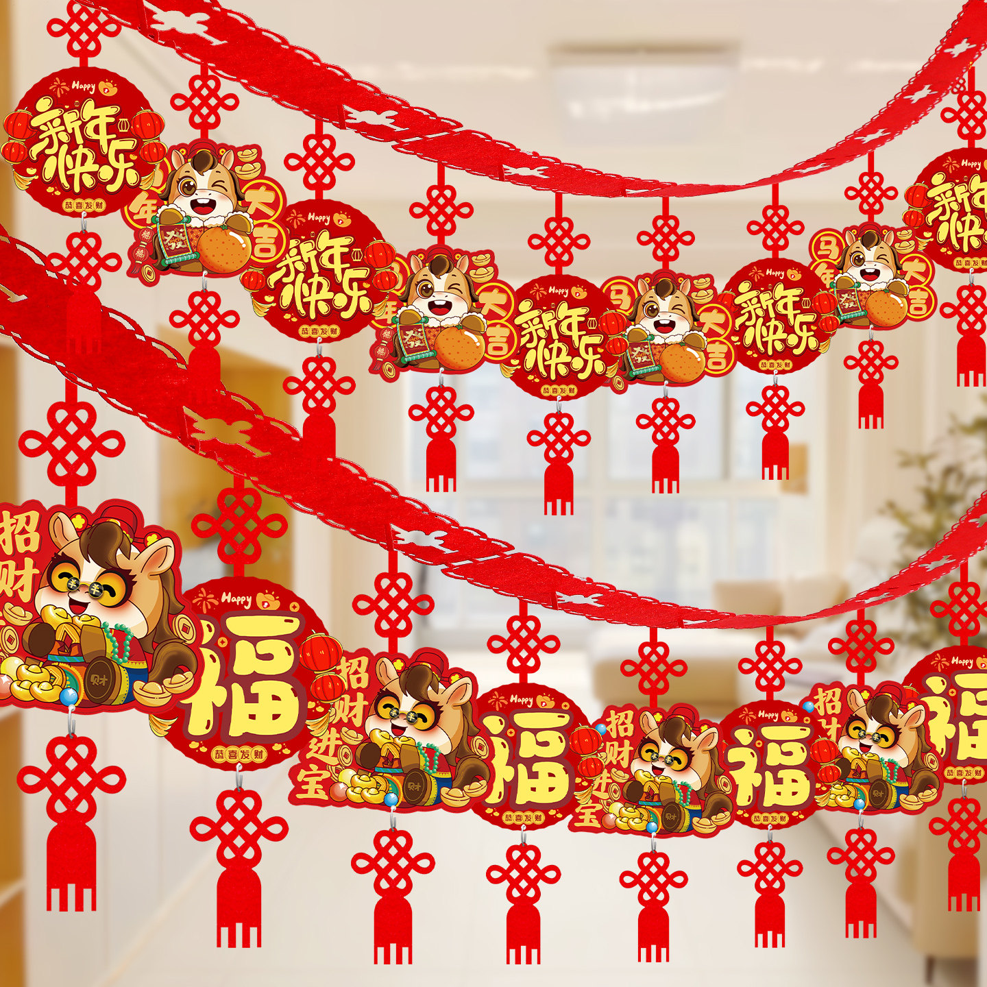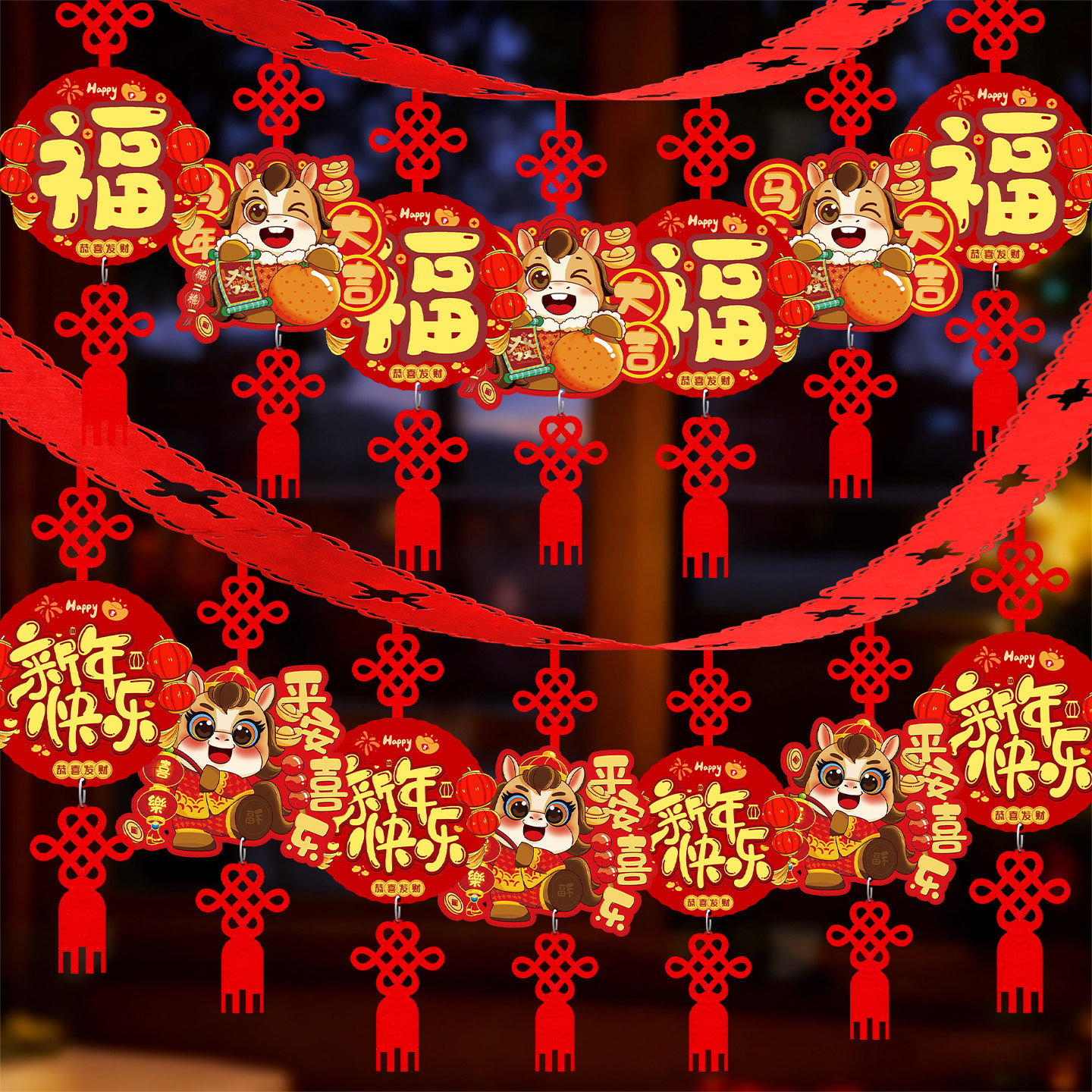 2026马年新年装 旦教室布置过年挂饰 饰福字彩条毛条彩色拉花彩带元