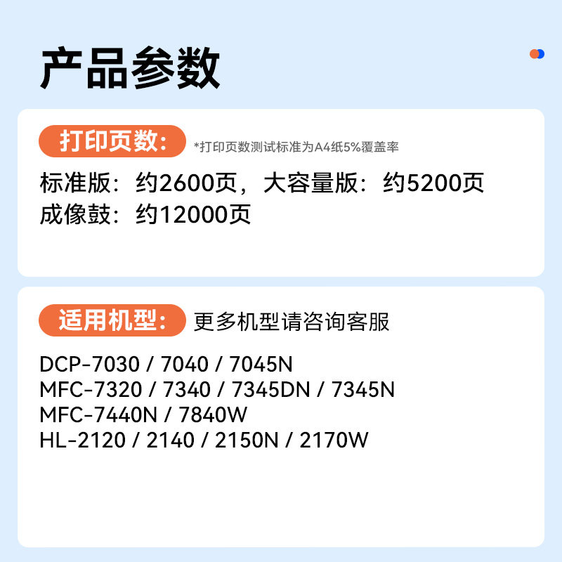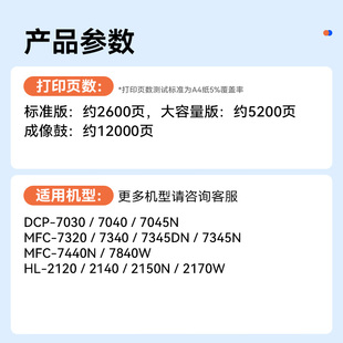 TN2125碳粉DR2150鼓架非原装 适用兄弟7450粉盒 7450激光打印机墨盒TN2115 MFC 裕品 兄弟MFC7450硒鼓Brother