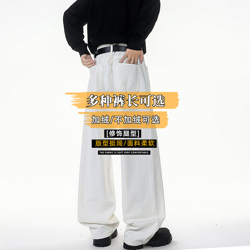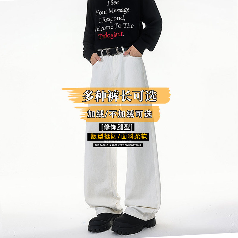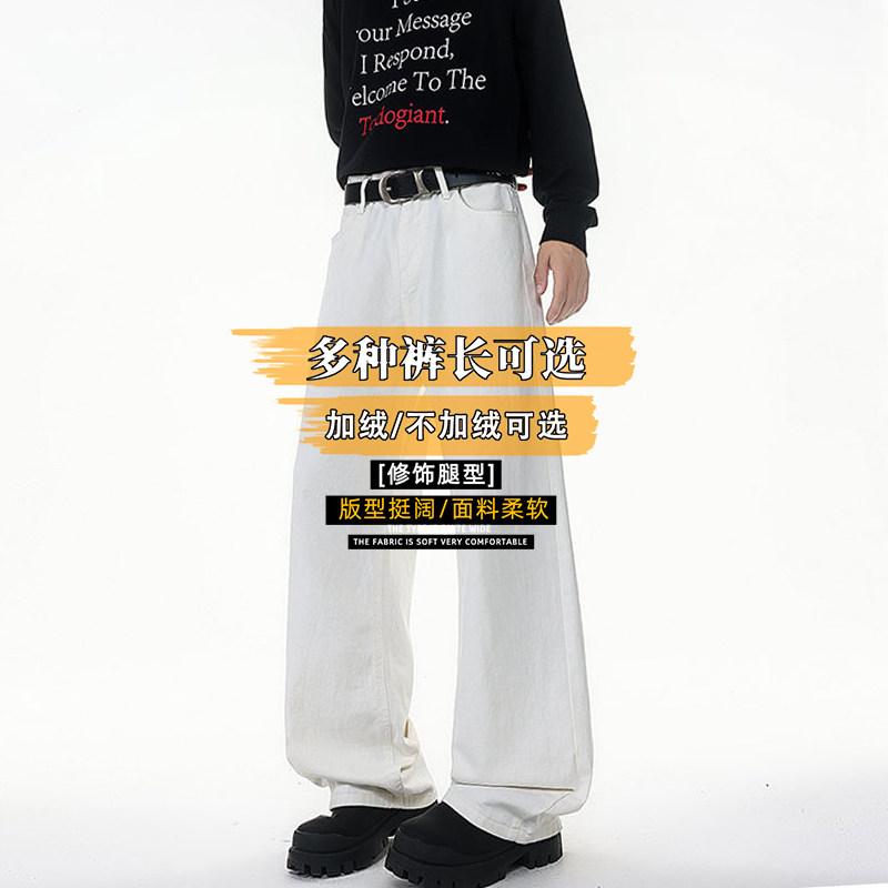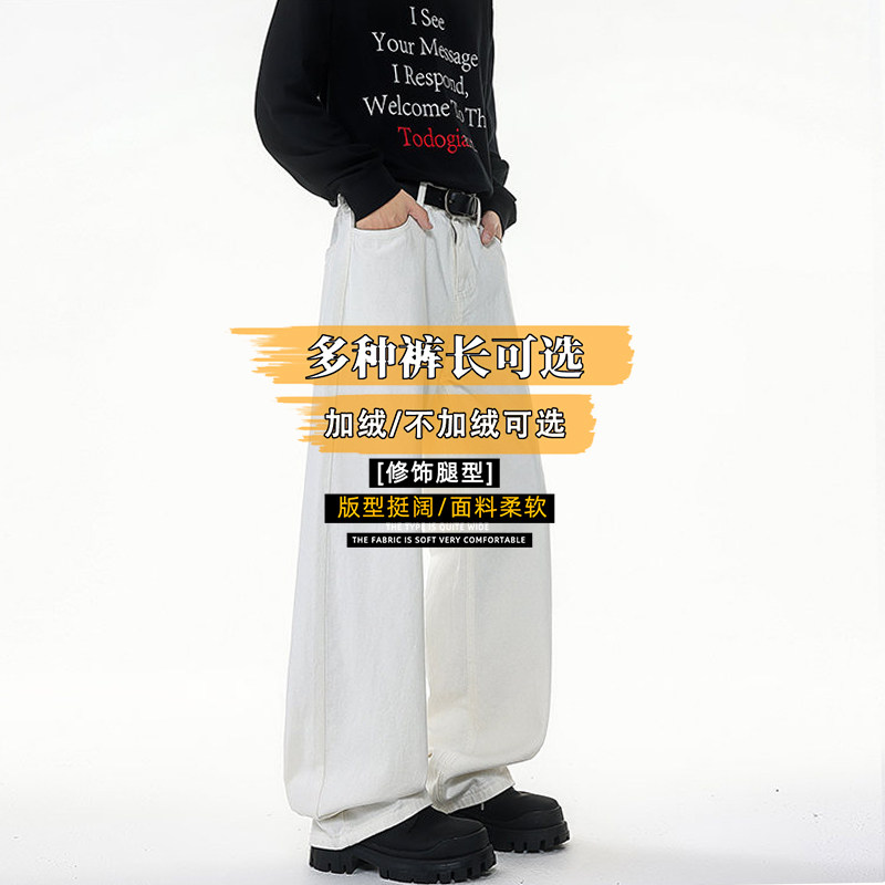 男190高个子加长版 115男士 直筒阔腿裤 休闲长裤 冬季 加绒白色牛仔裤