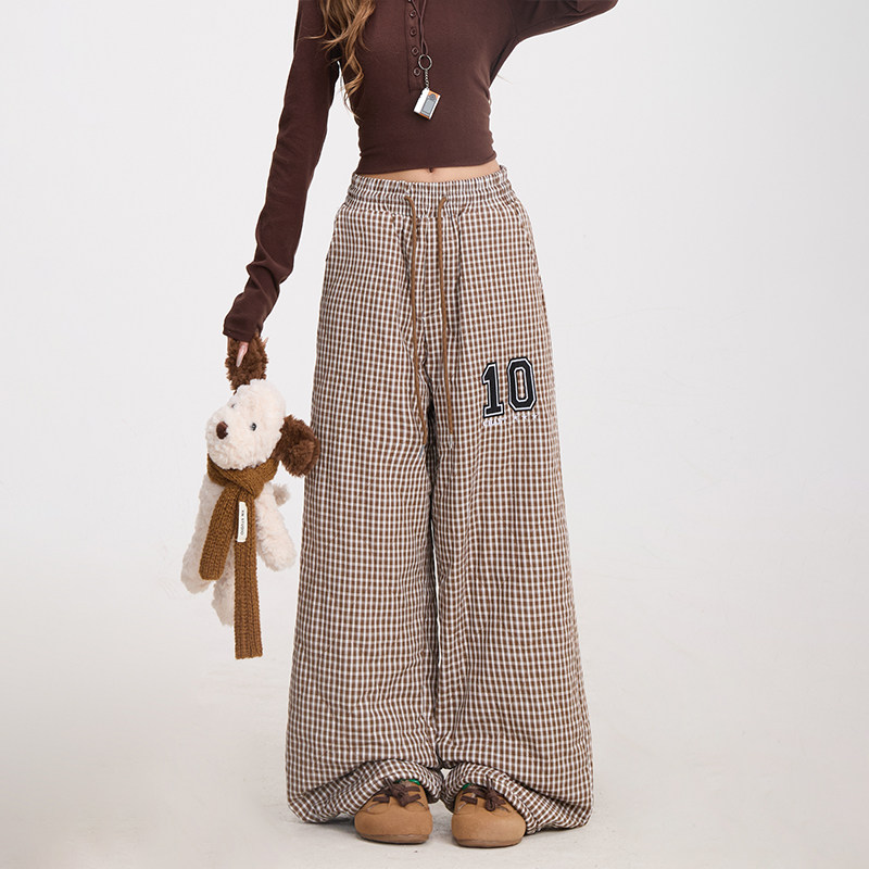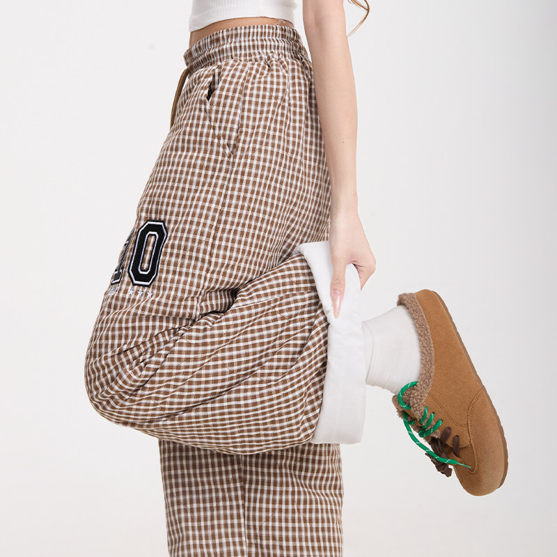慵懒风加厚保暖宽松直筒阔腿裤 女冬季 复古格子棉裤 NERESUM美式