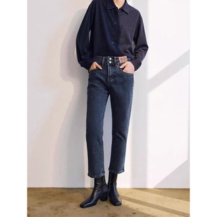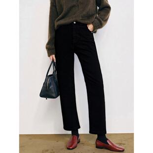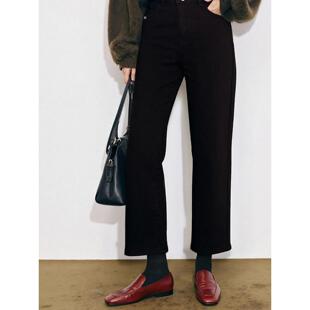 高腰显瘦加厚直筒烟管裤 Basic 女春季 百家好黑色九分牛仔裤 House