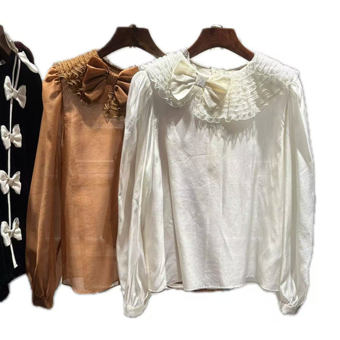 气质优雅圆领蕾丝侧边蝴蝶结衬衫 南油2026春秋新品 时尚 法式 仙 女装