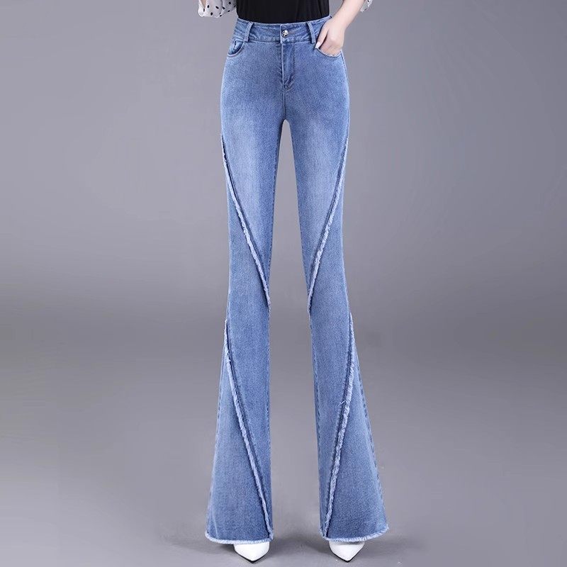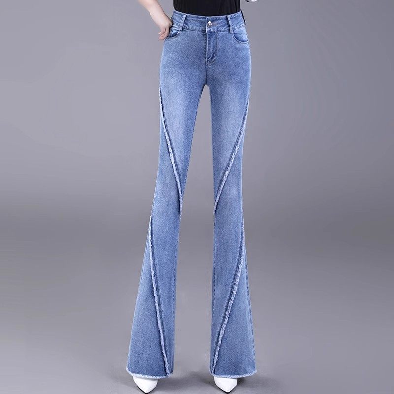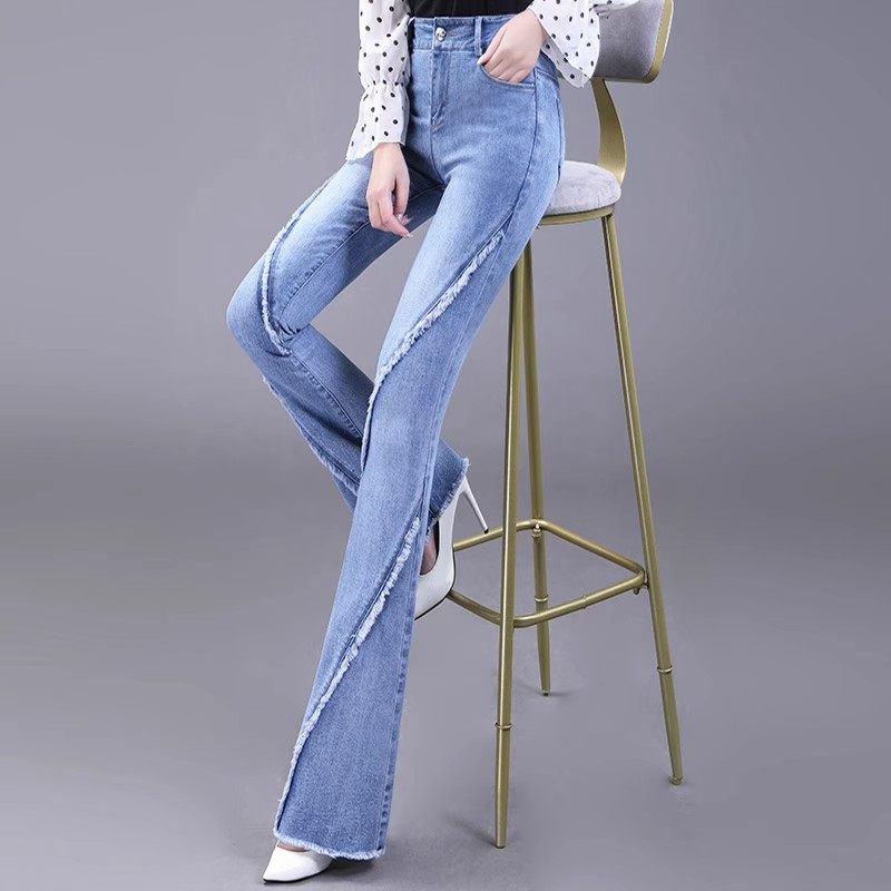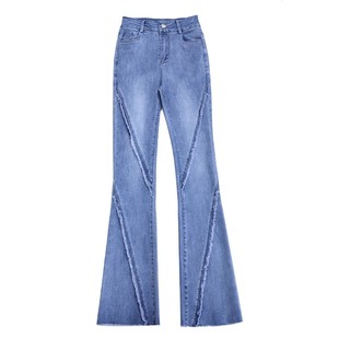 韩版 新款 时尚 百搭毛边微喇裤 牛仔裤 高腰显瘦加长喇叭裤 女2025春装