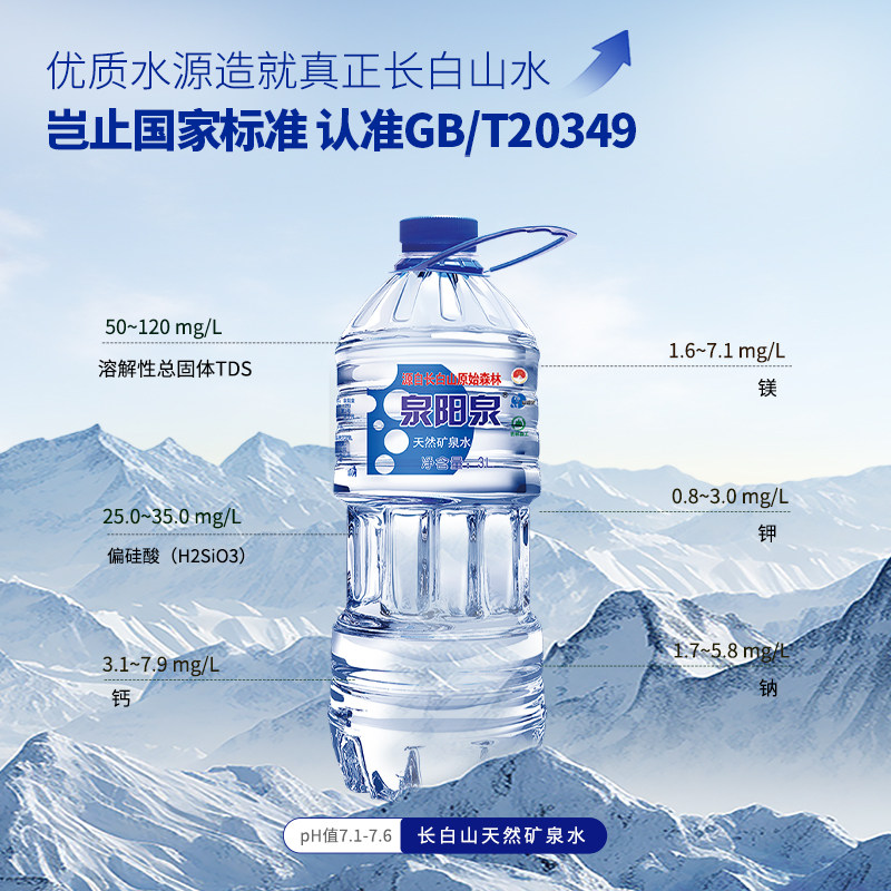5箱 6瓶 泉阳泉长白山天然矿泉水弱碱性家庭泡茶饮用水整箱装 升3L