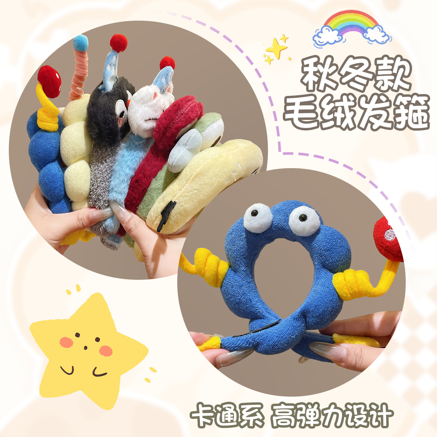 可爱卡通毛绒发箍男2026新款 秋冬洗脸专用头箍防滑不掉压发卡头饰
