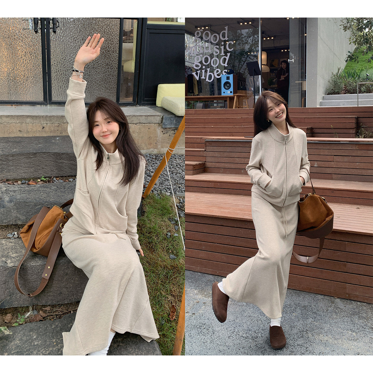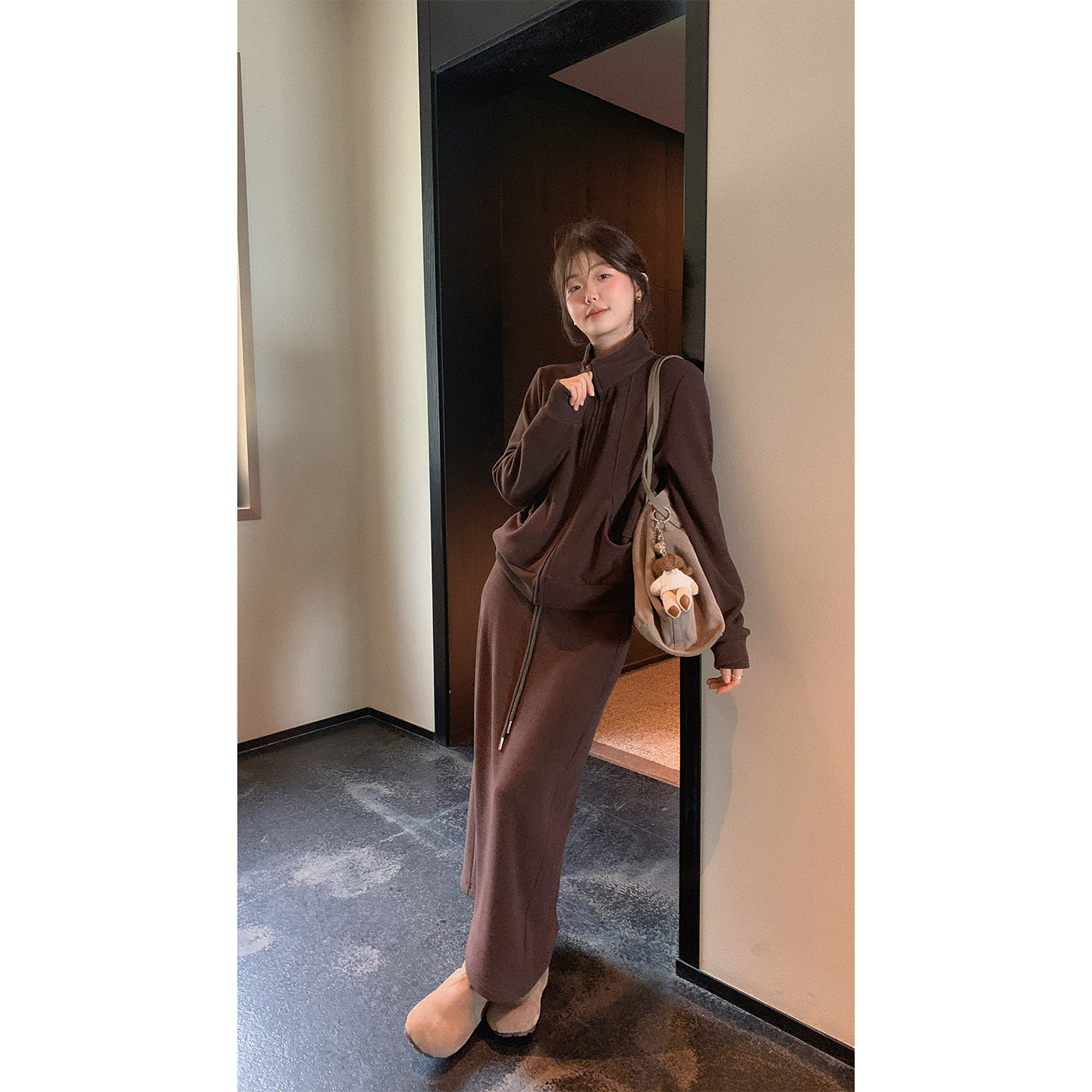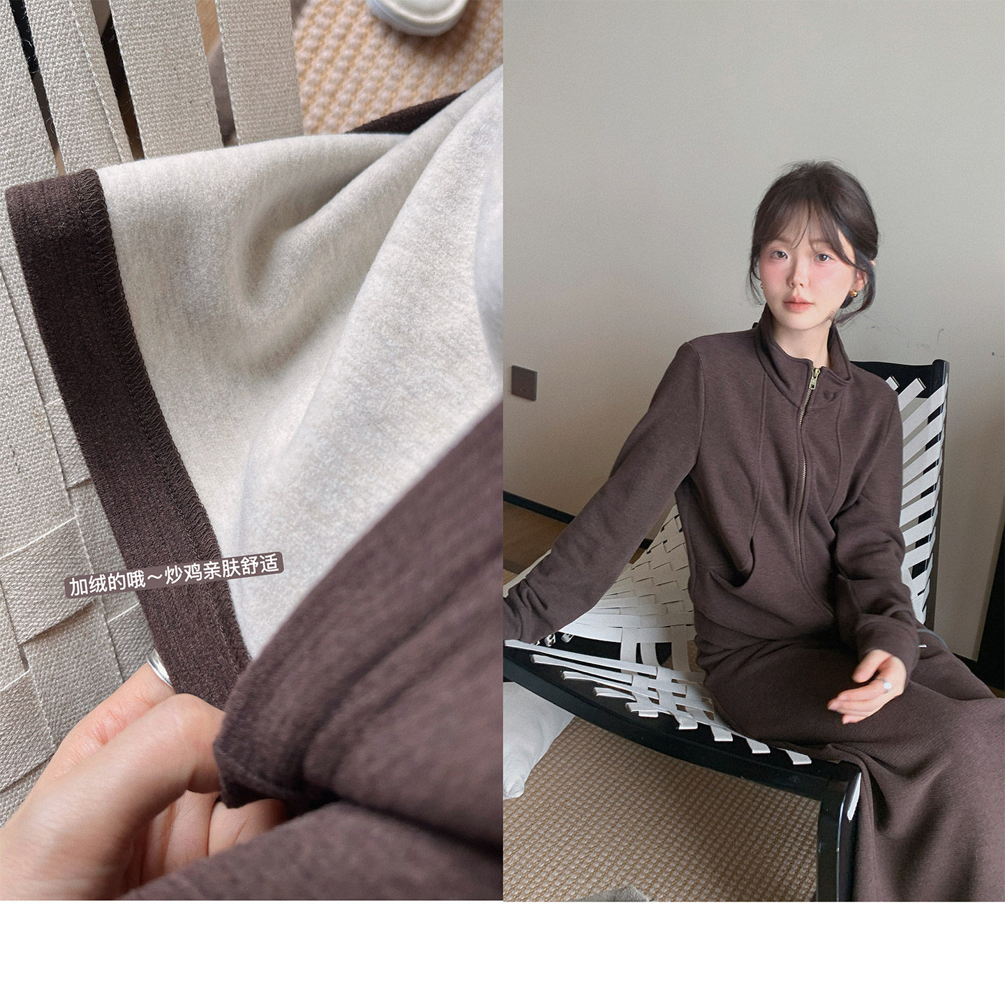 一三良品小个子加厚加绒卫衣开衫 立领上衣半裙两件套冬 半身裙套装