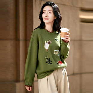 高级感上衣宽松打底针织衫 圆领100%纯山羊绒衫 女高端毛衣秋冬新款