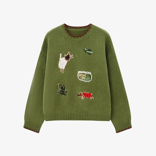 针织打底衫 品牌高级感羊毛衫 女半高领宽松毛衣秋冬加厚羊绒长袖