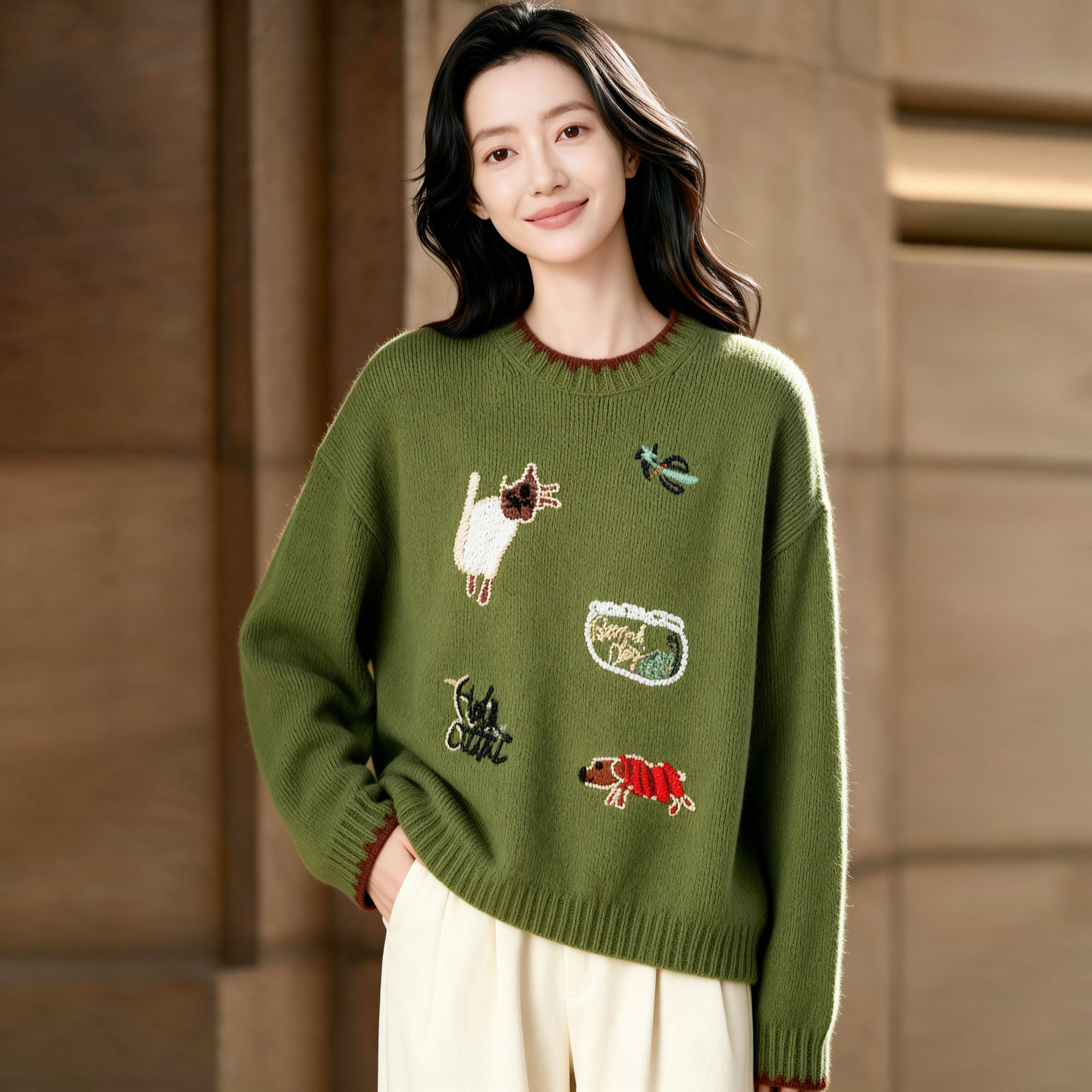 女纯羊绒毛衣针织打底衫 气质美学 100%纯山羊绒开衫 修身 秋冬 法式