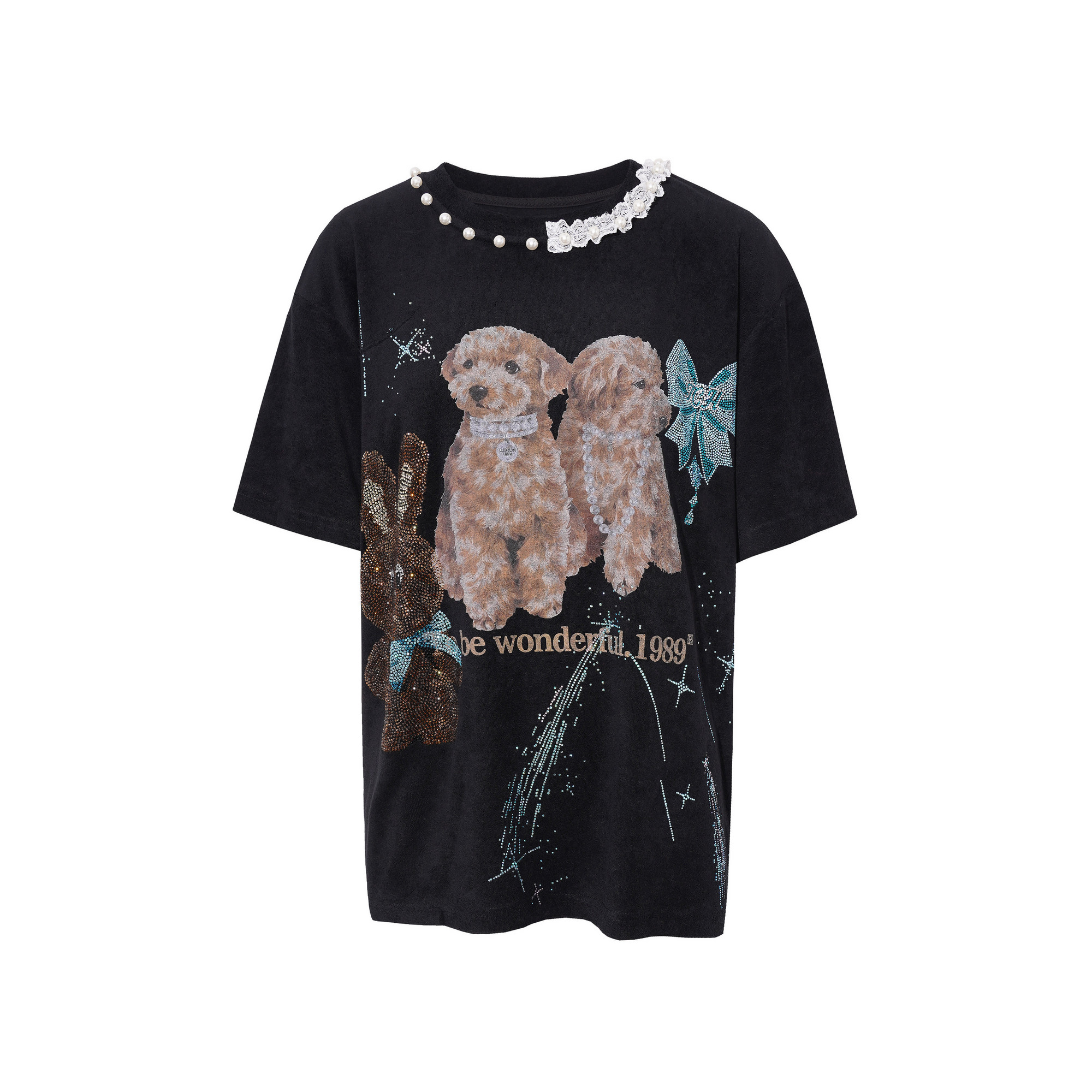烫钻卡通小狗圆领休闲短袖 时尚 T恤女T75D10E1009 新款 TCH2025冬季