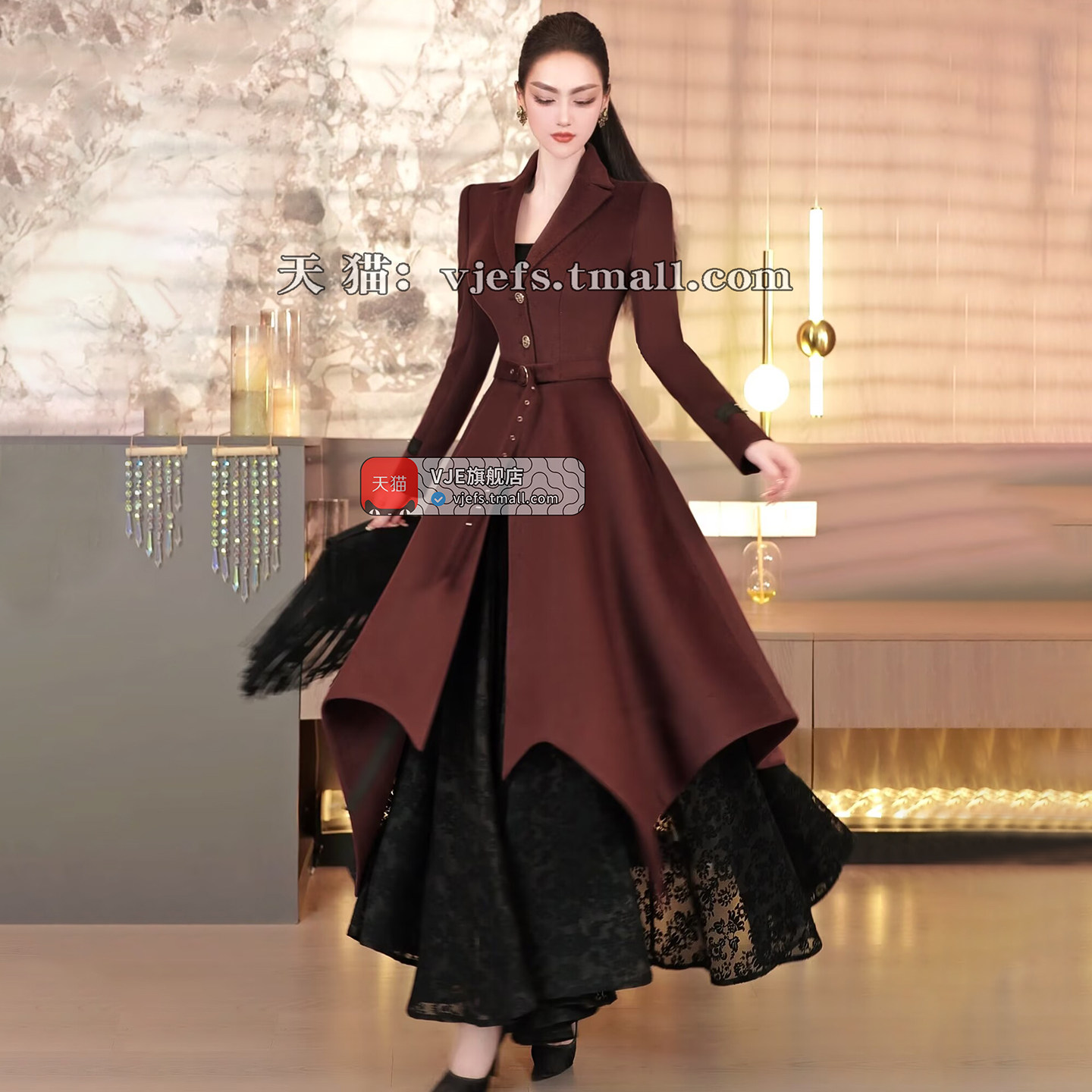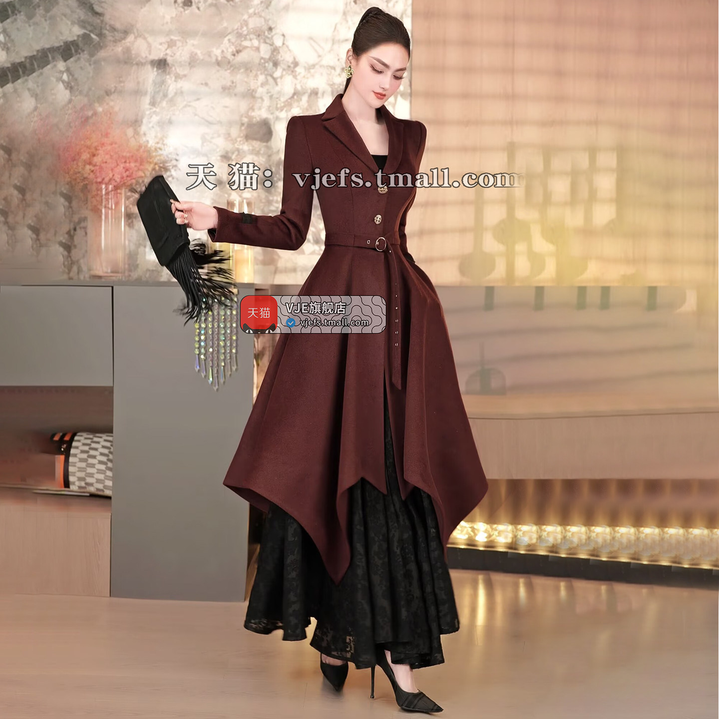 VJE冬季 气质商务女王范收腰外套 欧美英伦风不规则大衣2025新款