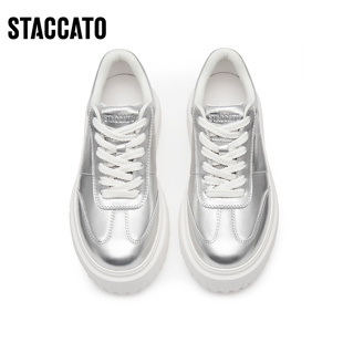 子女鞋 休闲鞋 冬H0082CM4 板鞋 思加图加厚厚底加绒银色百搭小白鞋