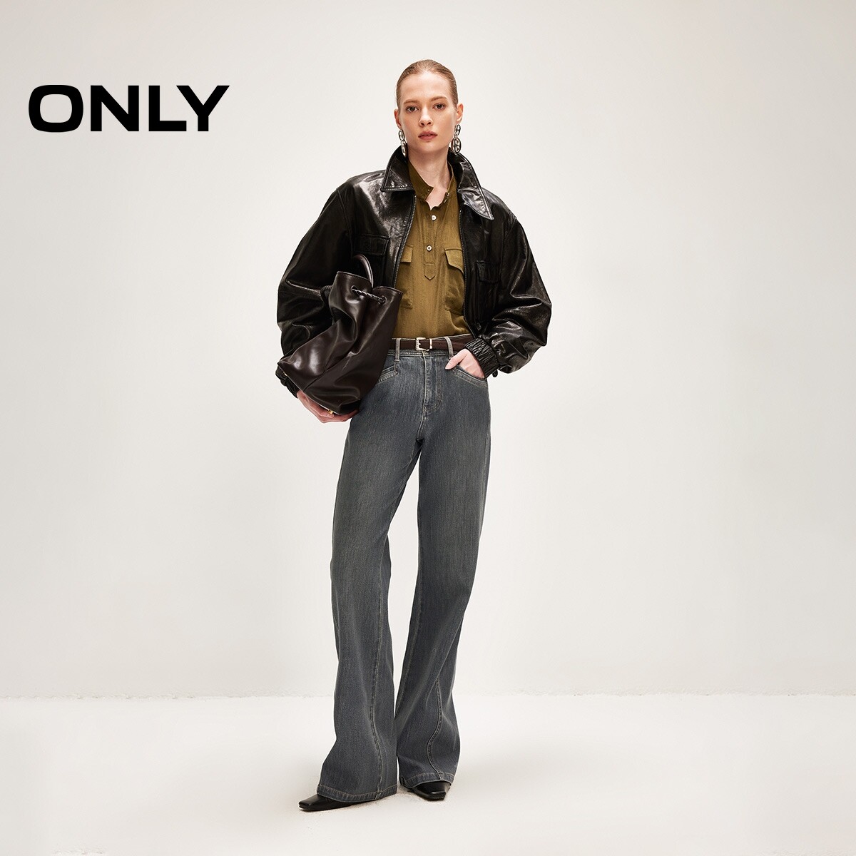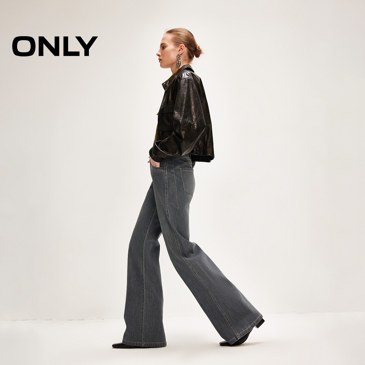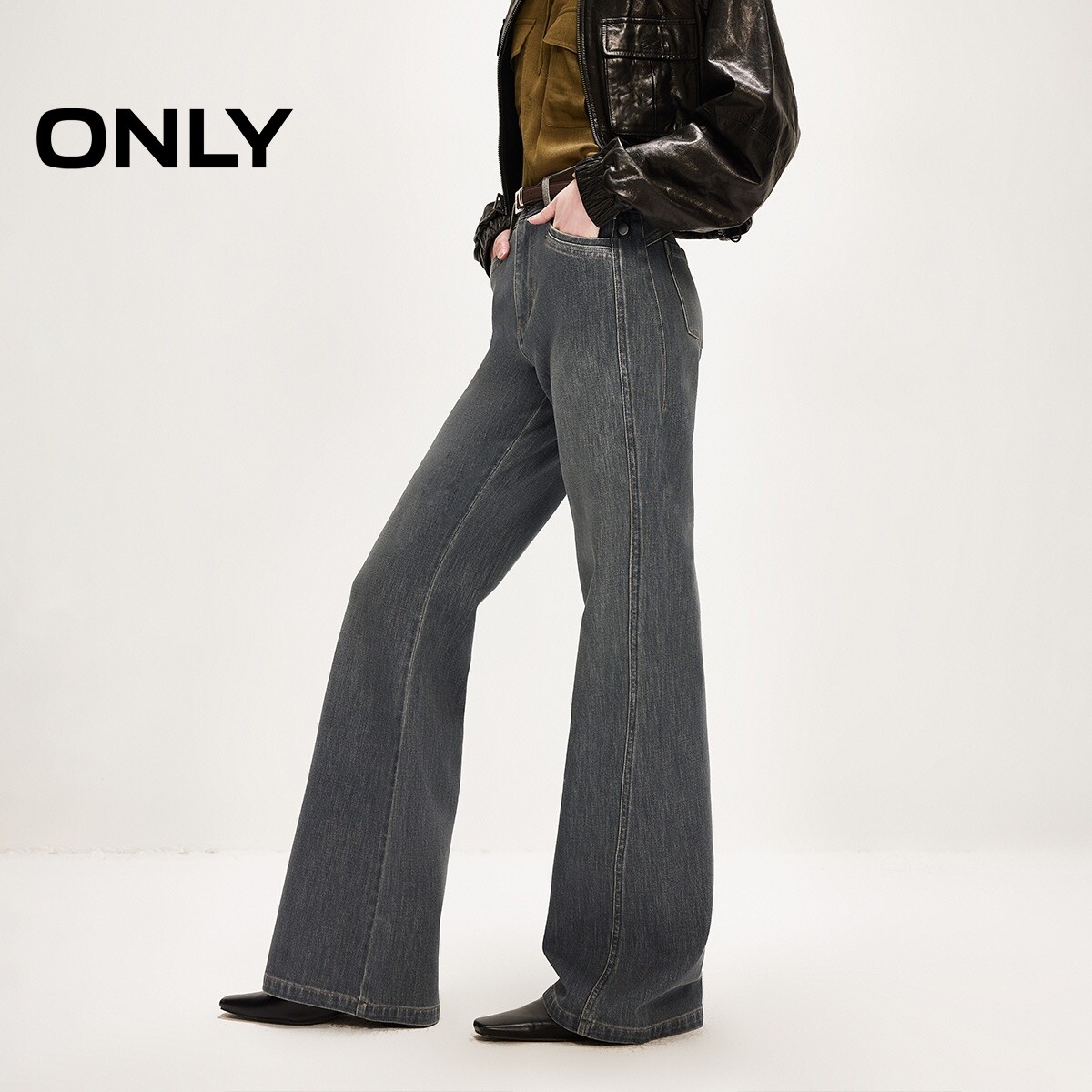新款 女 优雅百搭显瘦高腰长裤 牛仔裤 126132130 喇叭裤 ONLY2026春季