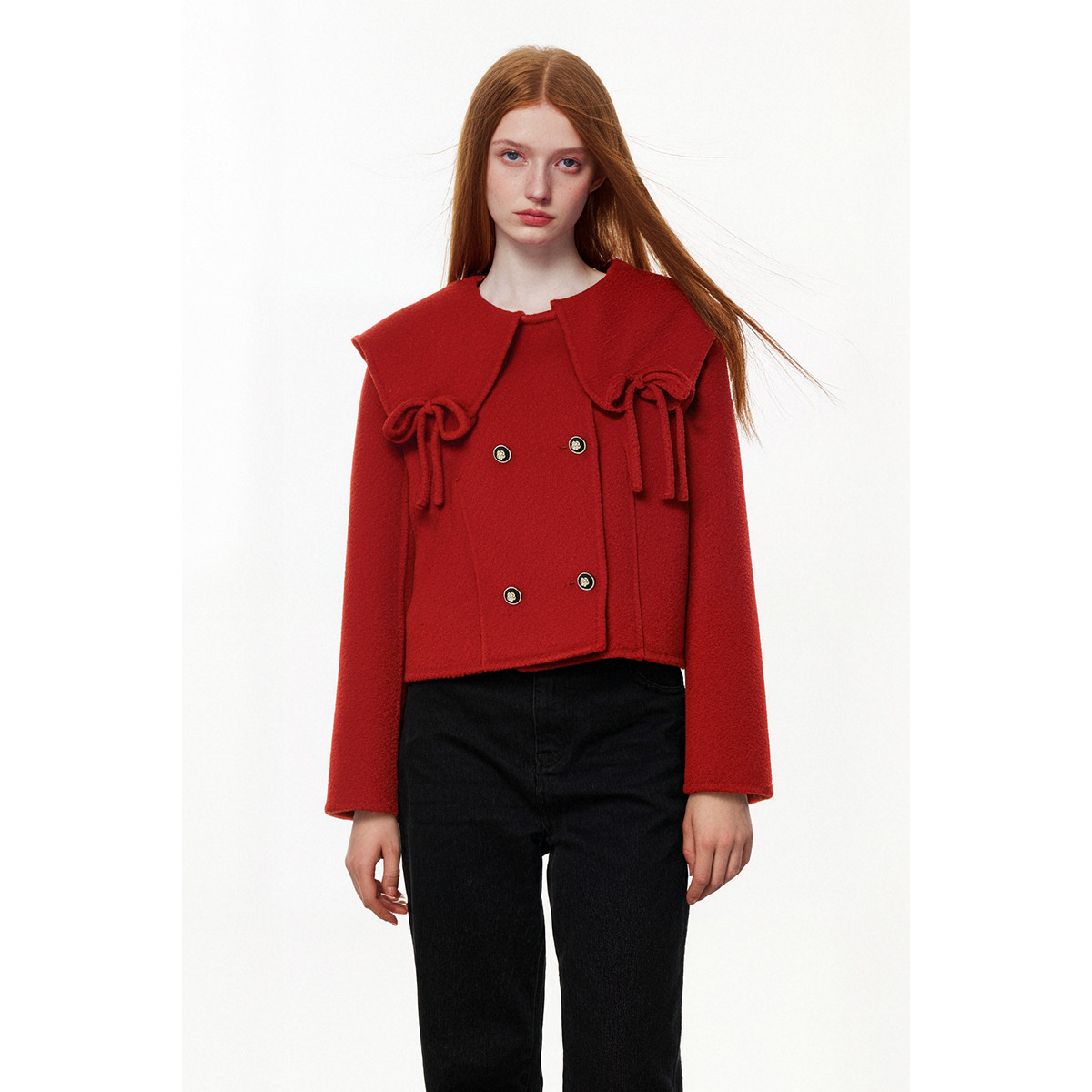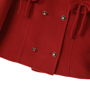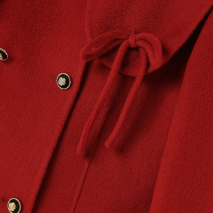 冬季 栖 娃娃领蝴蝶结双面呢长毛大衣693 100绵羊毛 1599