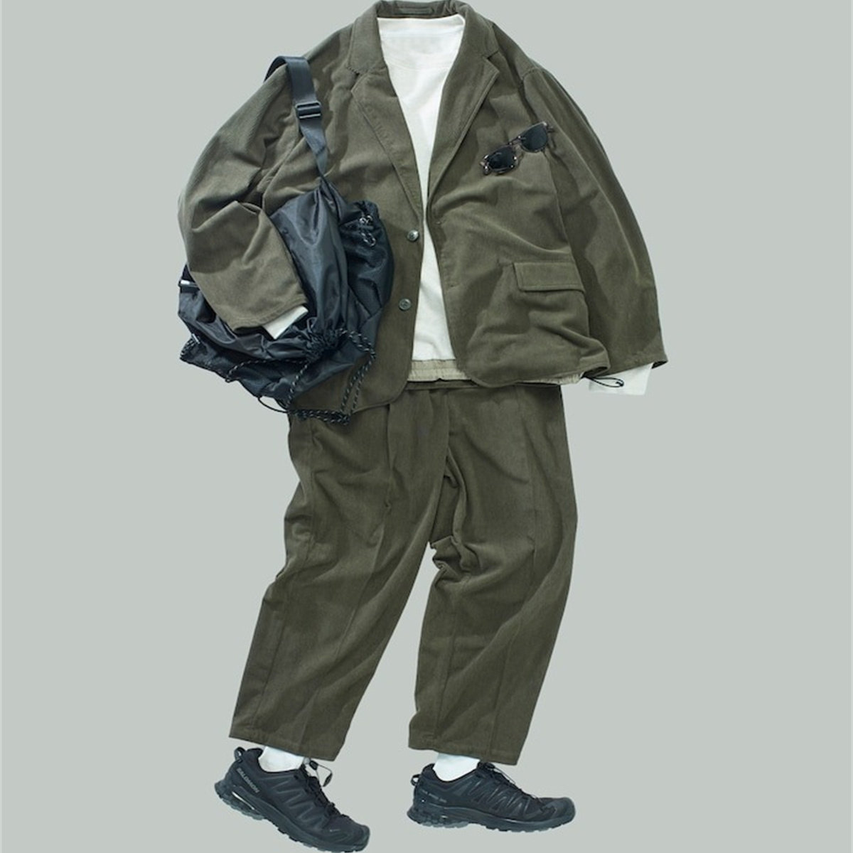 男套装 日潮freaks store25秋冬宽松休闲灯芯绒单排扣西服上衣西裤