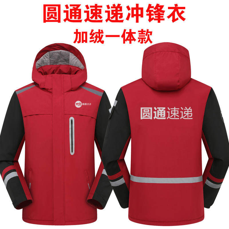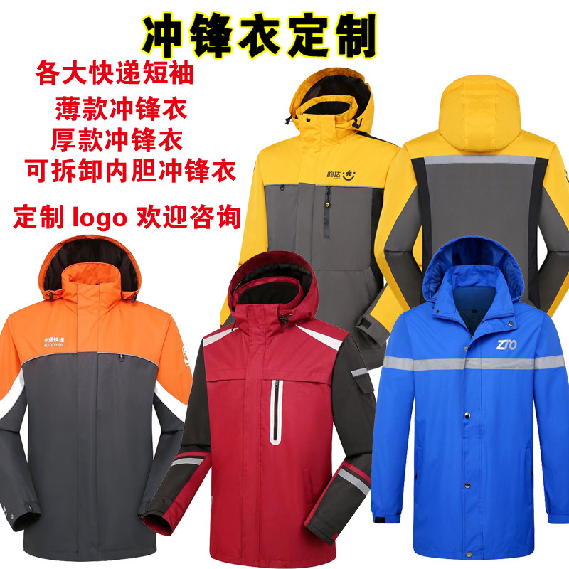 秋冬新款 冲锋衣外套可拆棉服防风防寒 官网极兔速递快递工作服工装