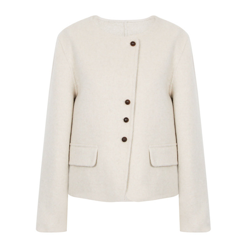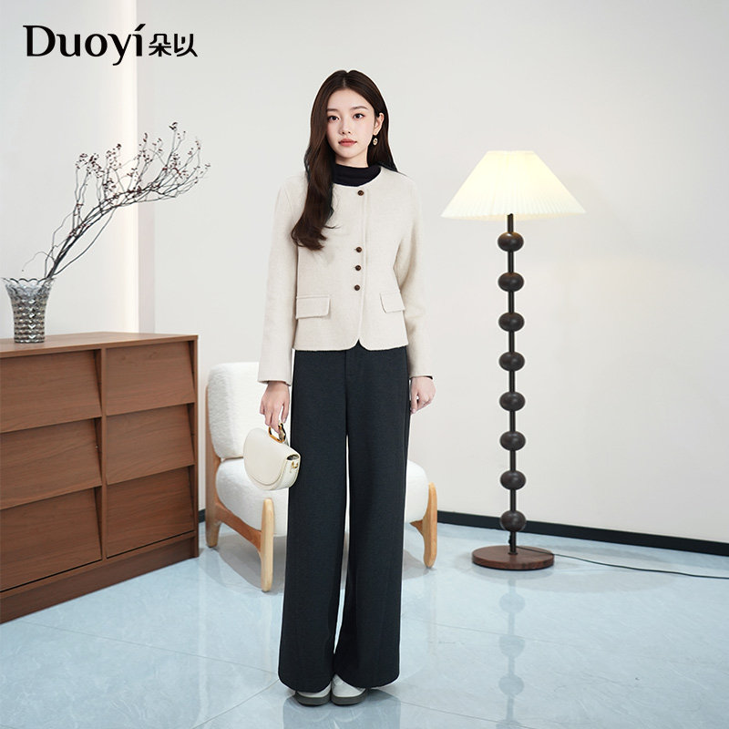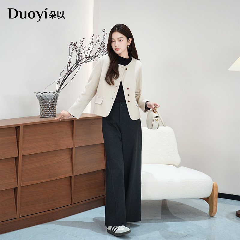双面呢外套圆领毛呢女 简约气质通勤羊毛羊绒短款 朵以2025冬季 新款