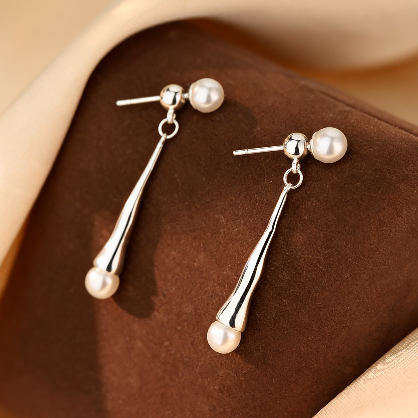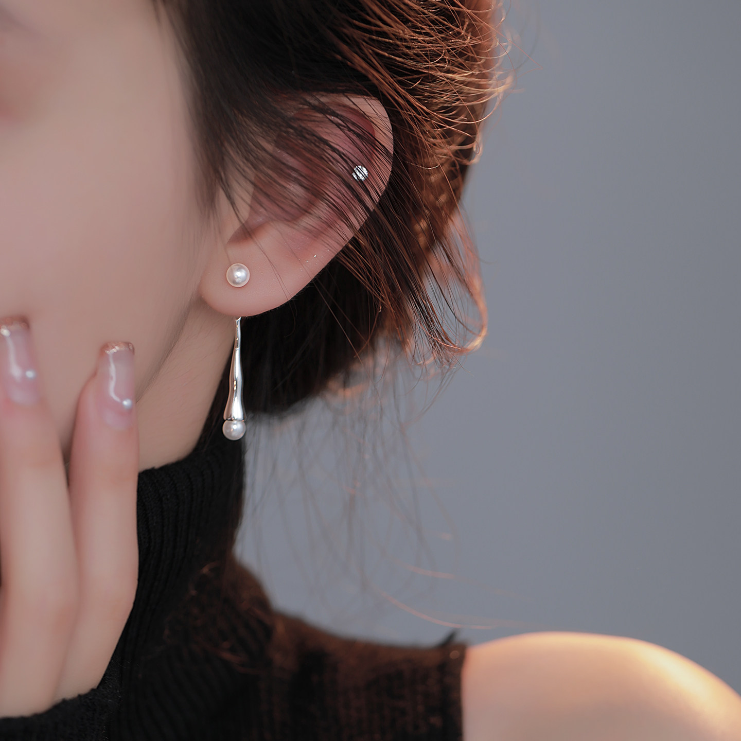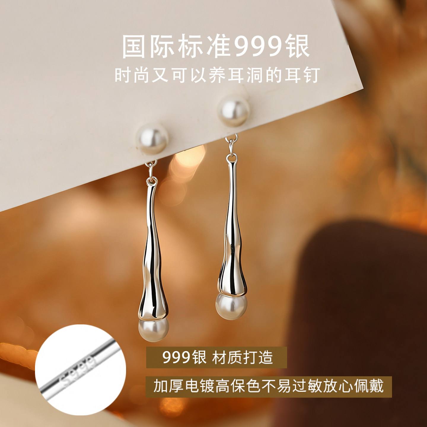 银色蝴蝶结珍珠款 耳环女气质温柔小香风耳钉耳坠小众设计独特耳饰