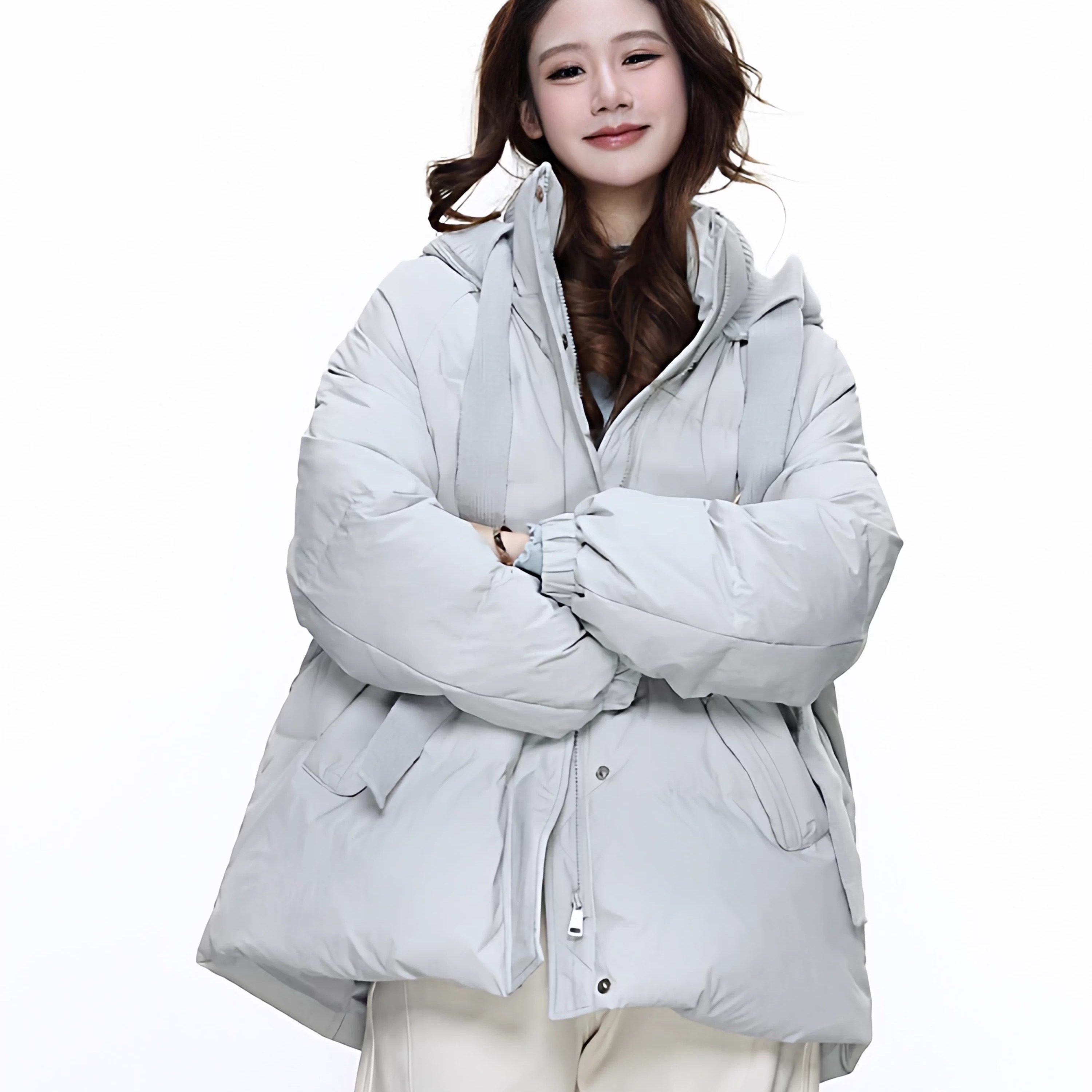 NTS97 羽绒服女抽褶收腰显瘦面包服外套 立领中长款