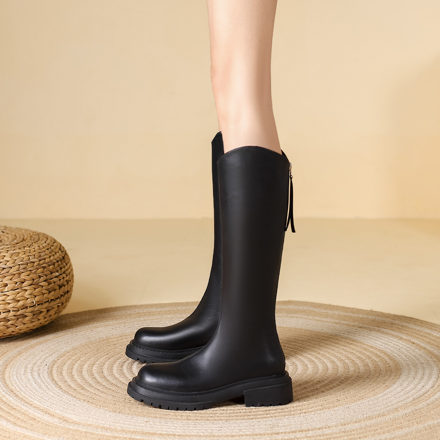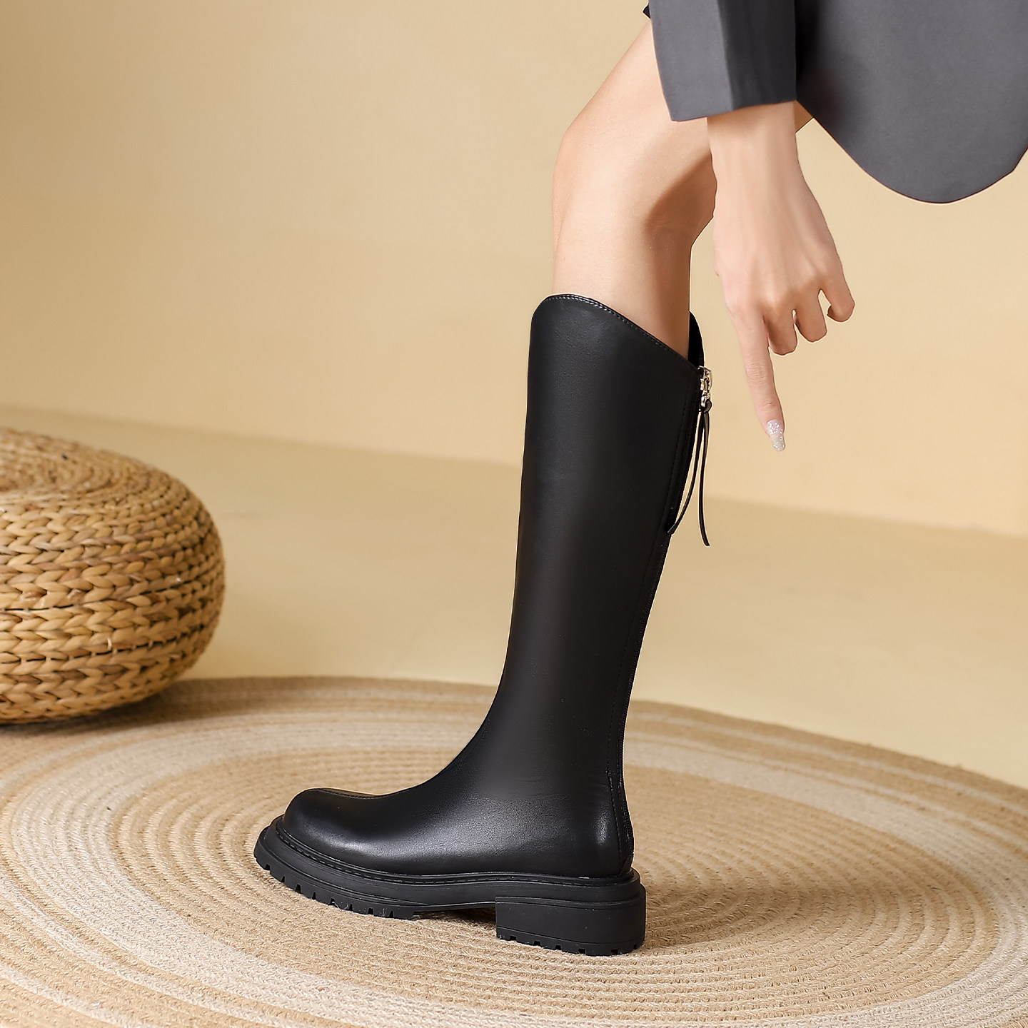 真皮 加绒v口骑士靴厚底高筒靴加宽瘦瘦靴 大筒围粗腿长筒靴女冬季