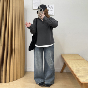 胖mm上衣 打底衫 大码 慵懒风软糯毛衣女秋冬内搭外穿套头宽松针织衫