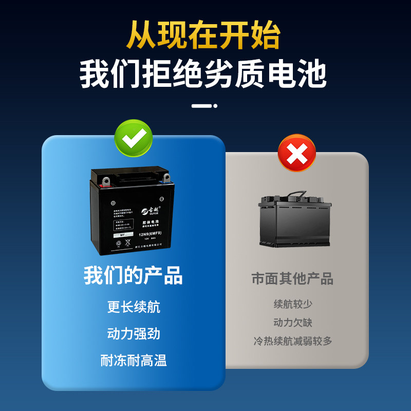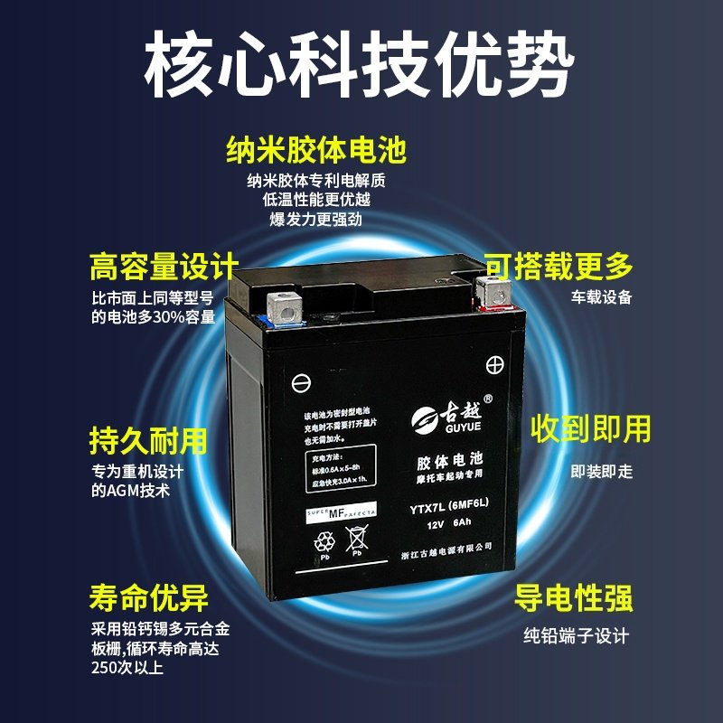 古越摩托车电瓶12v9a免维护干蓄电池125弯梁踏板车通用加水型7ah