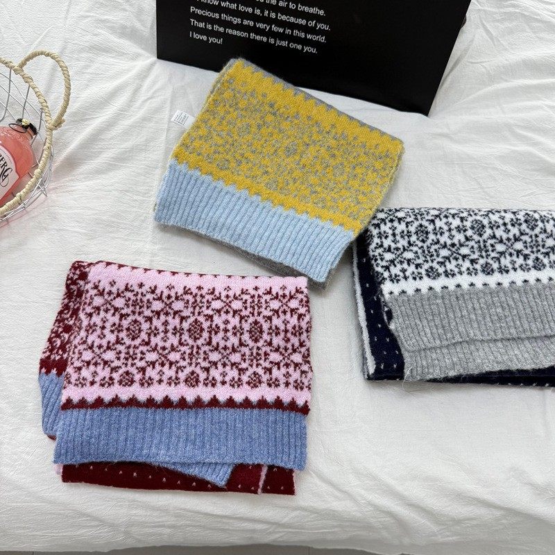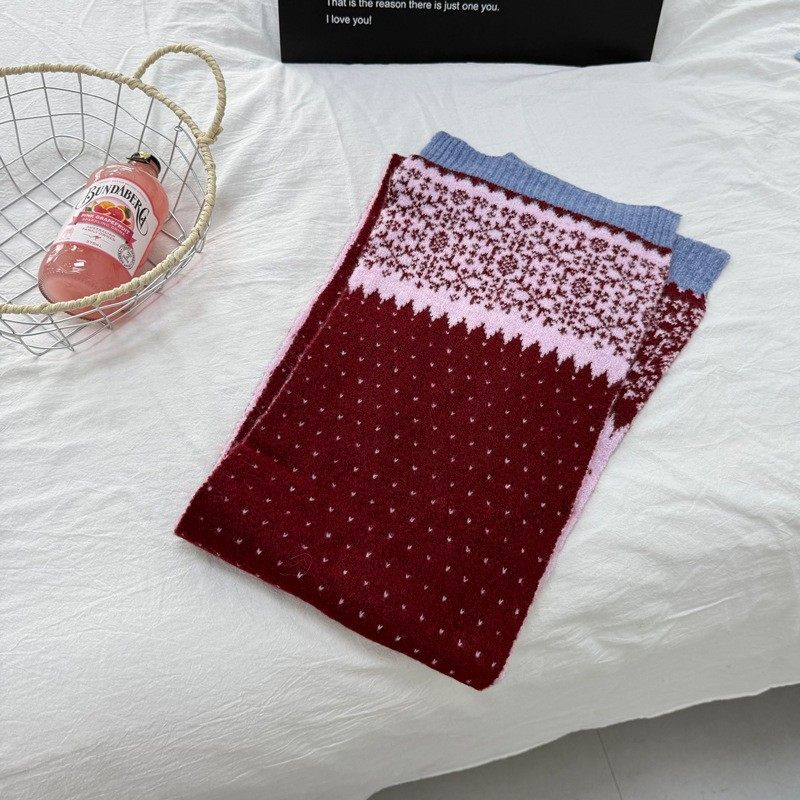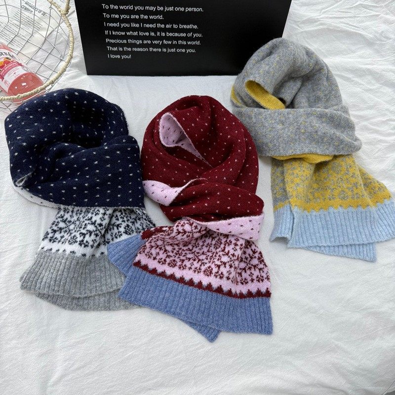 复古青花瓷雪花点点双面仿羊绒保暖围巾女秋冬季 文艺复古日系SD15