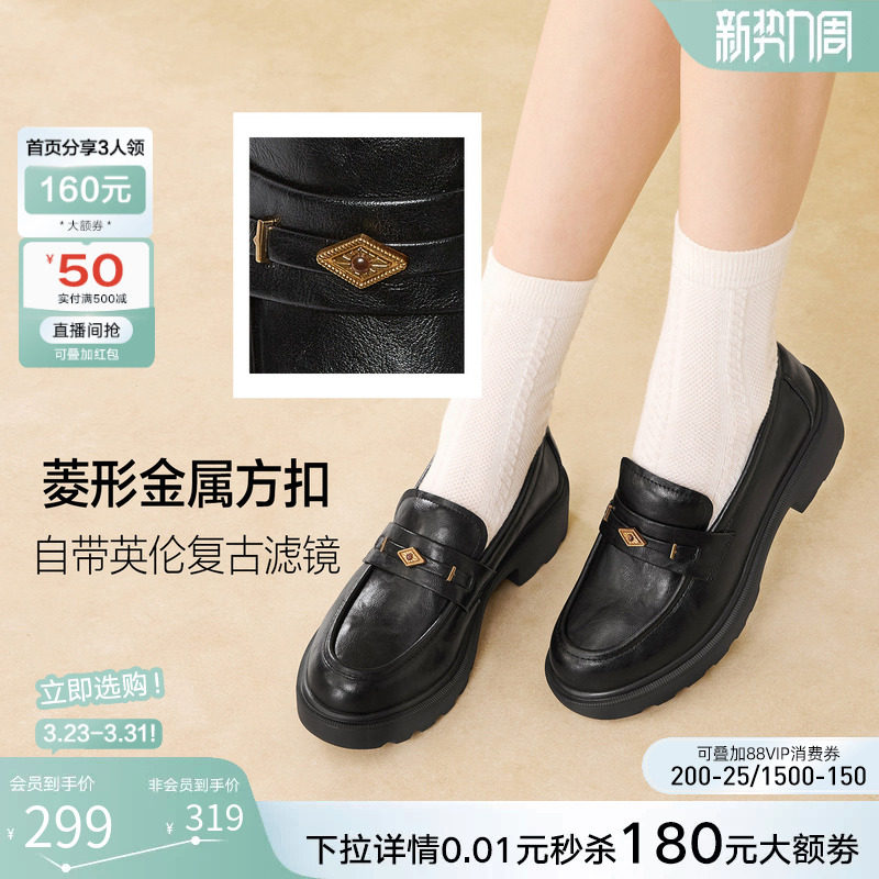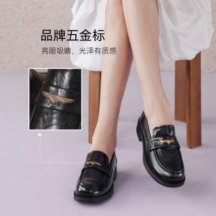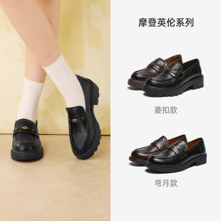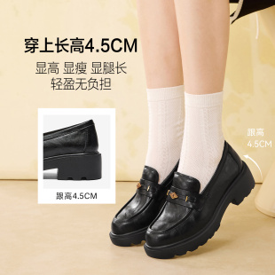 女单鞋 小皮鞋 UXV08AA6 英伦风厚底增高粗跟乐福鞋 百思图2026春新款