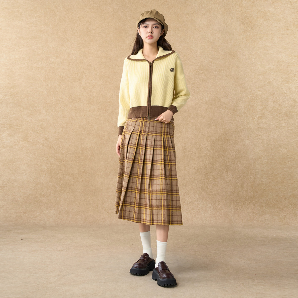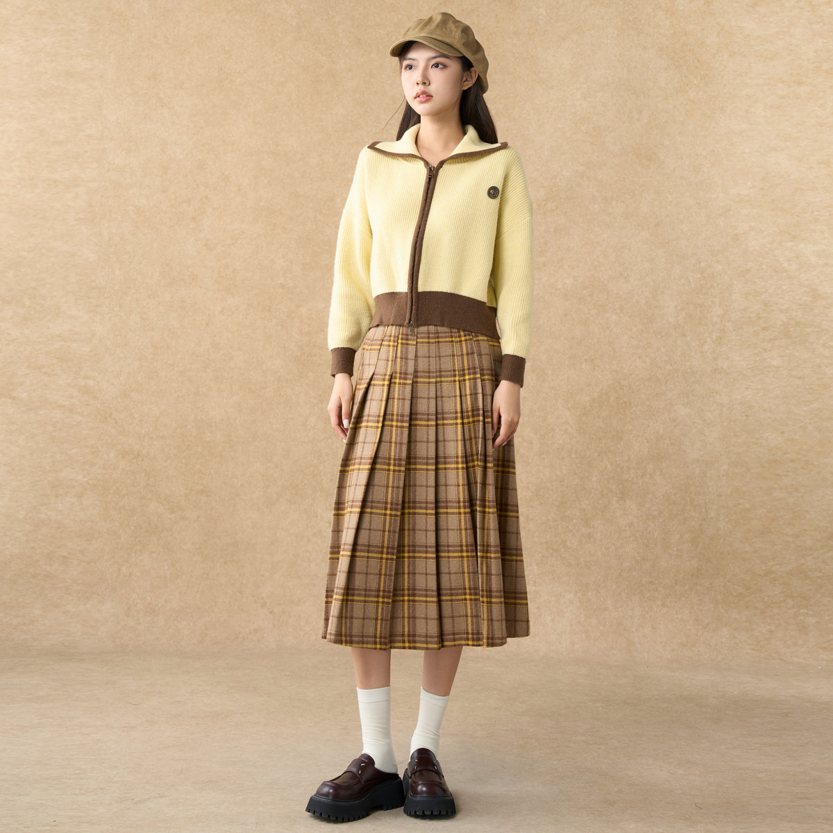 橘子树在哪儿学院风毛呢百褶半身裙女秋冬高腰a字长裙