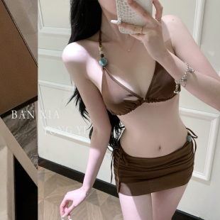 新款 高级感小胸性感辣妹比基尼四件套保守显瘦沙滩度假温泉泳衣女