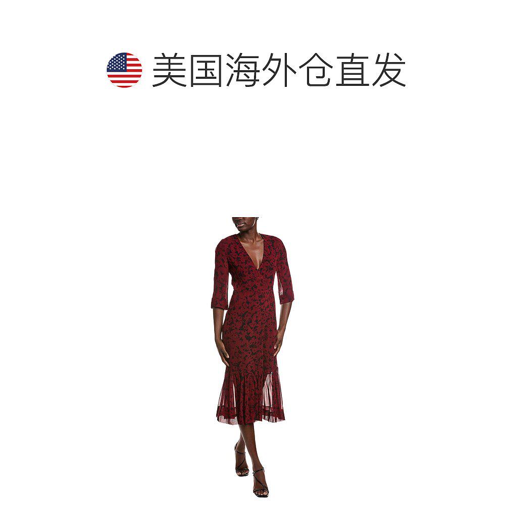 Georgette Wrap Midi 自营GANNI red Light Dress 美国 Printed