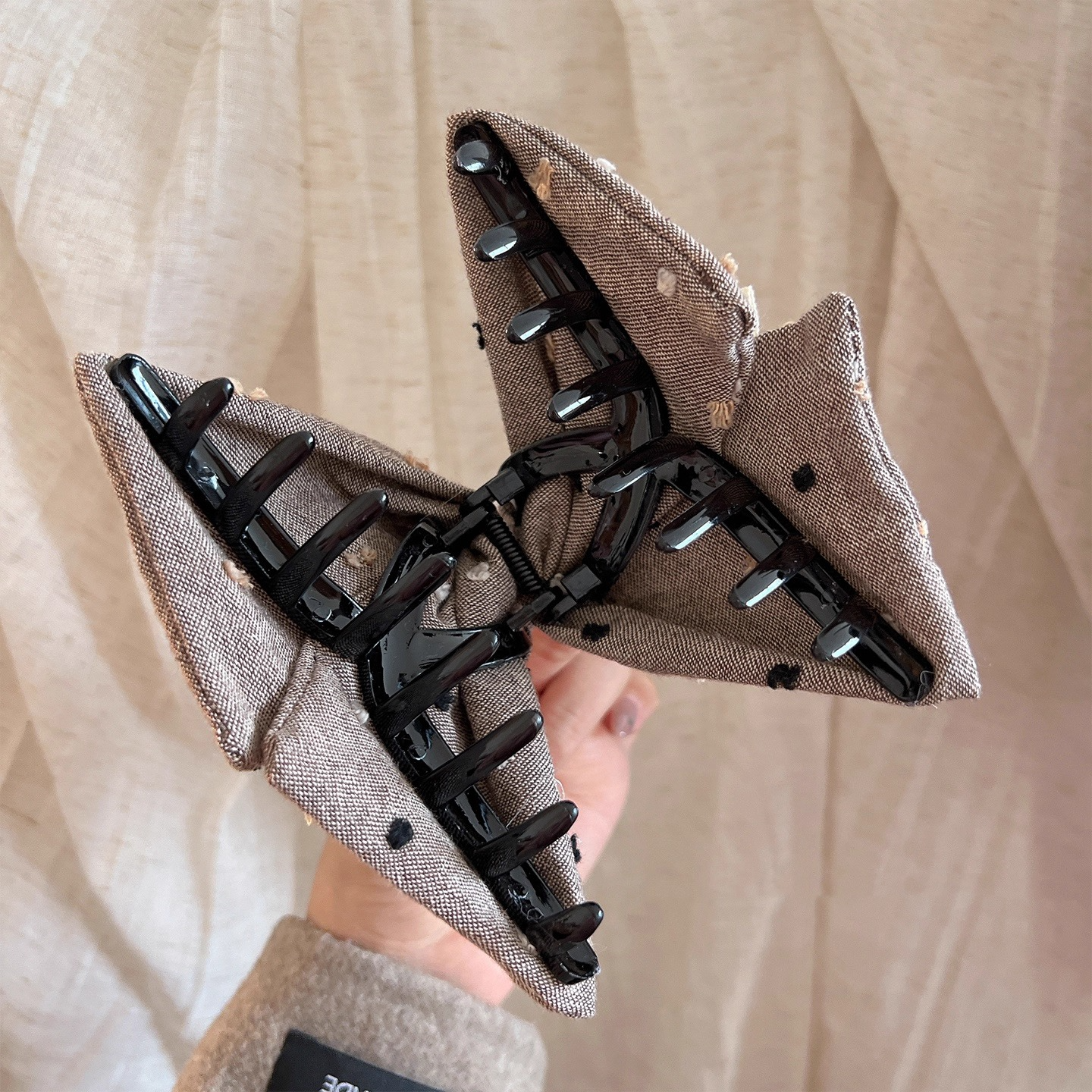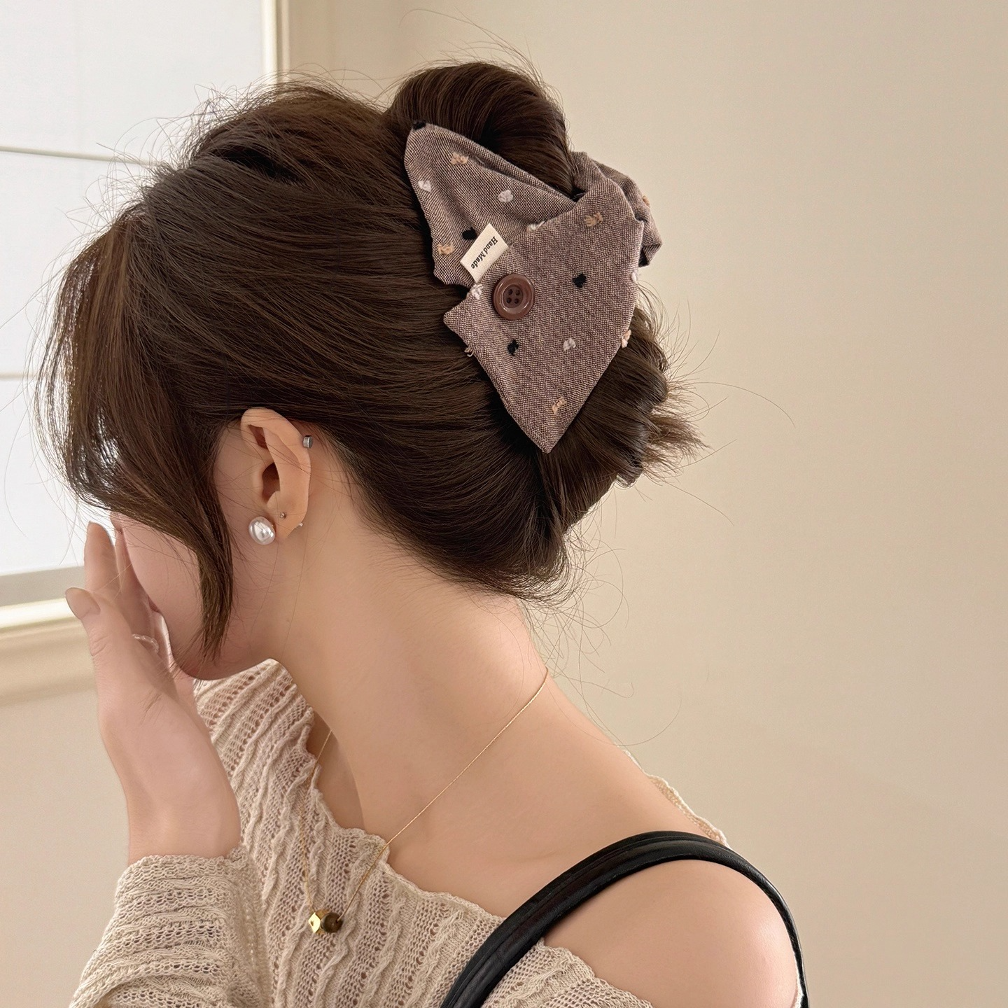 韩系布艺纽扣三角发夹女后脑勺盘发抓夹网红新款 鲨鱼夹子发卡发饰