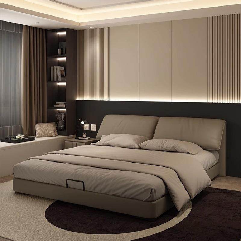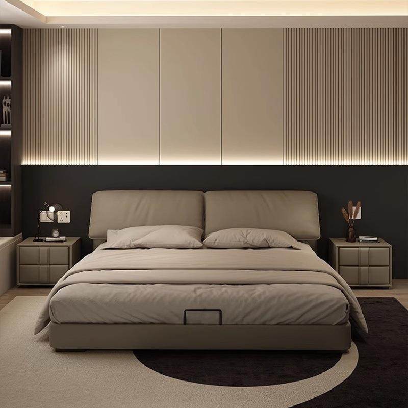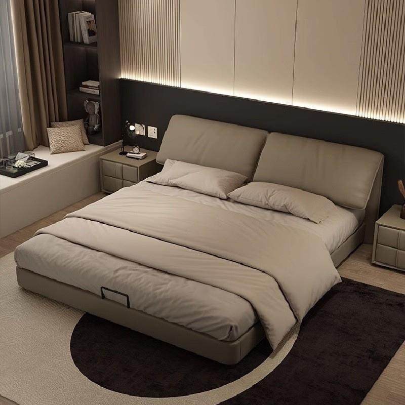 极简真皮床轻奢现代简约软包双人主卧床高端大象耳朵床