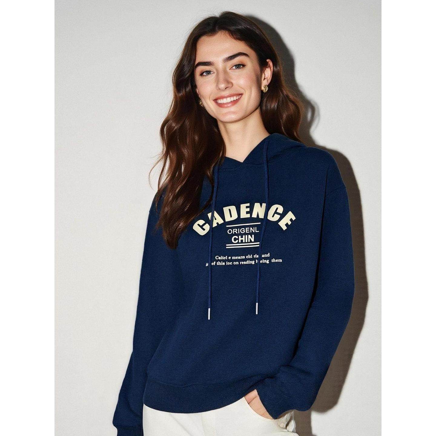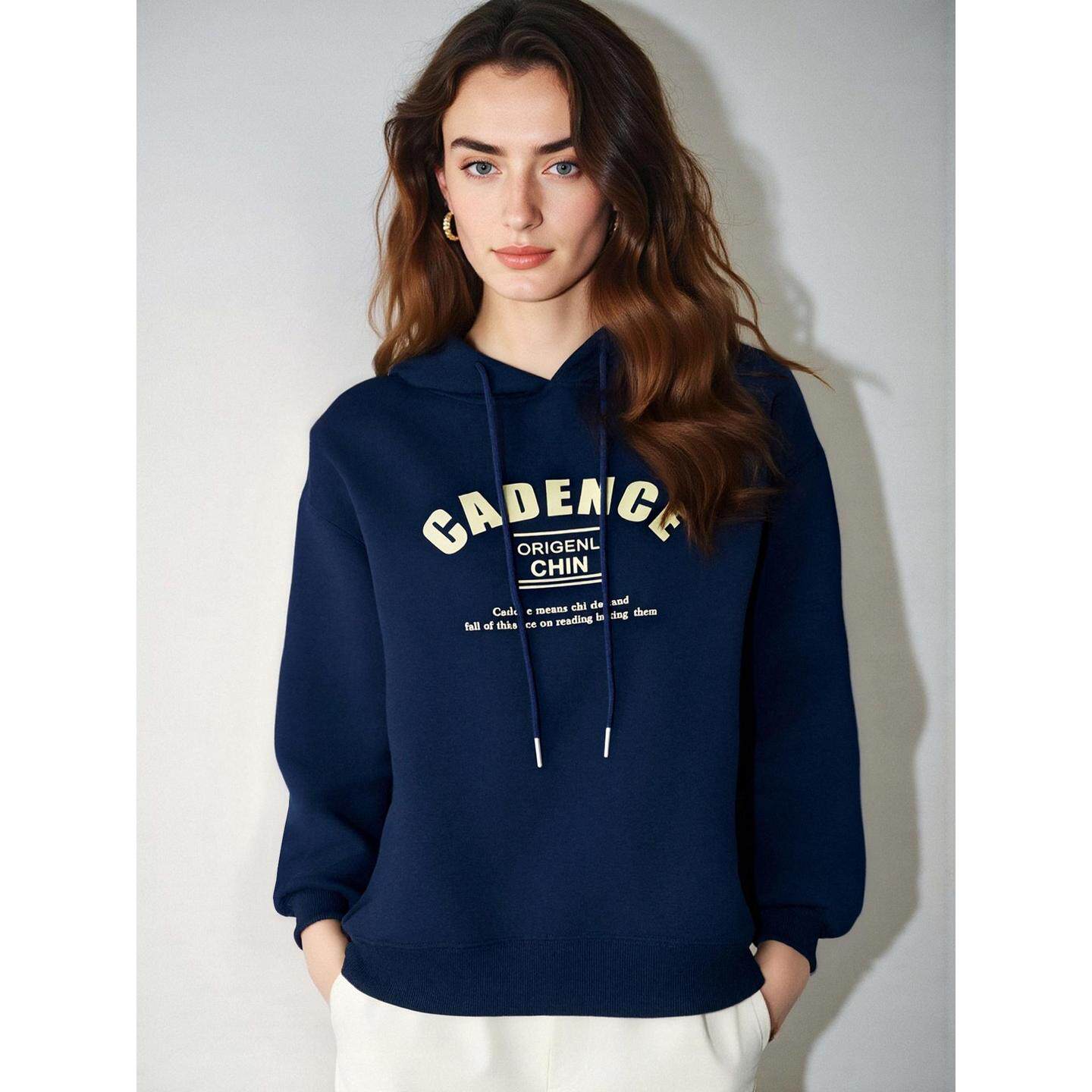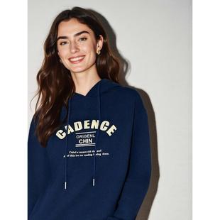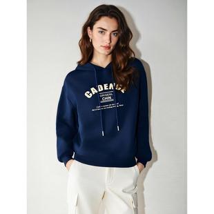 宝蓝色字母印花连帽卫衣女秋冬慵懒风帽衫 百家好美式 House Basic
