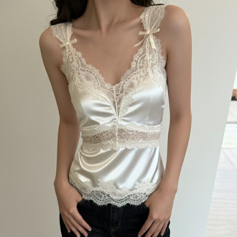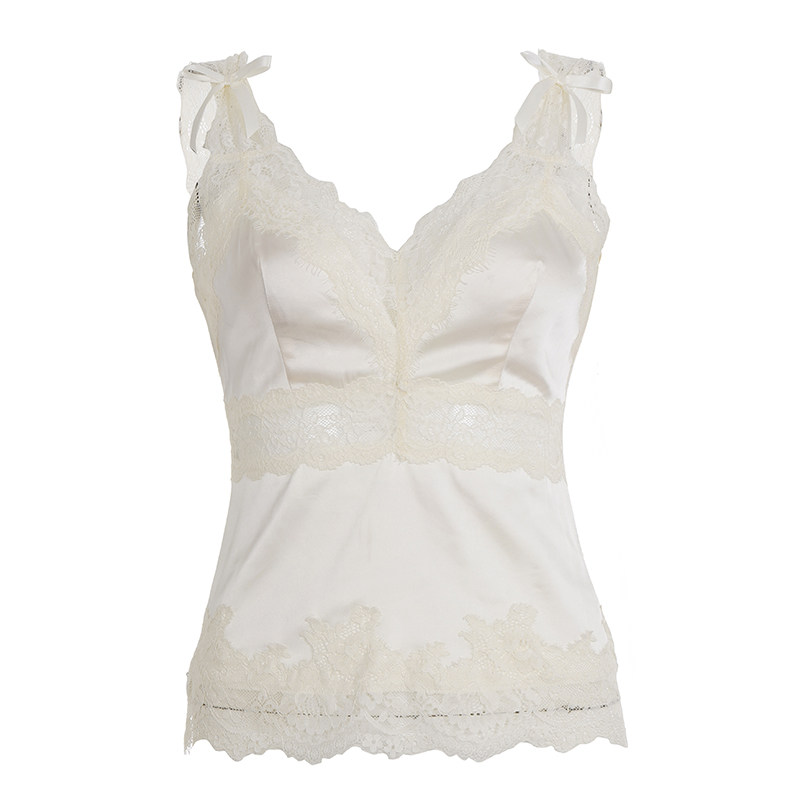 蕾丝V领吊带背心女 法式 白色性感内搭上衣 纯欲芭蕾风 ROCKMORE