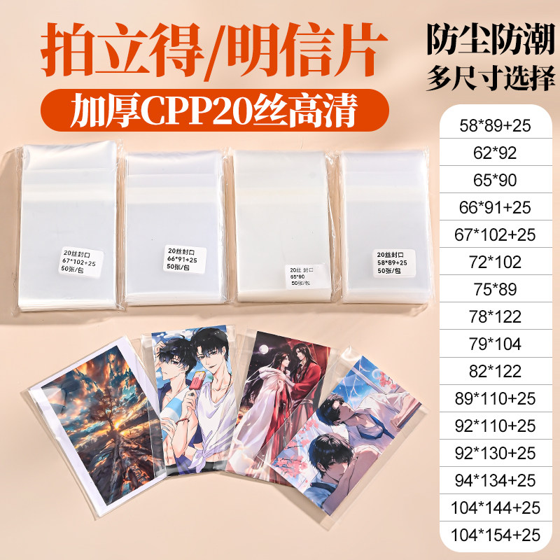拍立得wide宽幅 SQ相纸卡膜宝丽莱CPP2丝加厚平口封口保护袋 mini