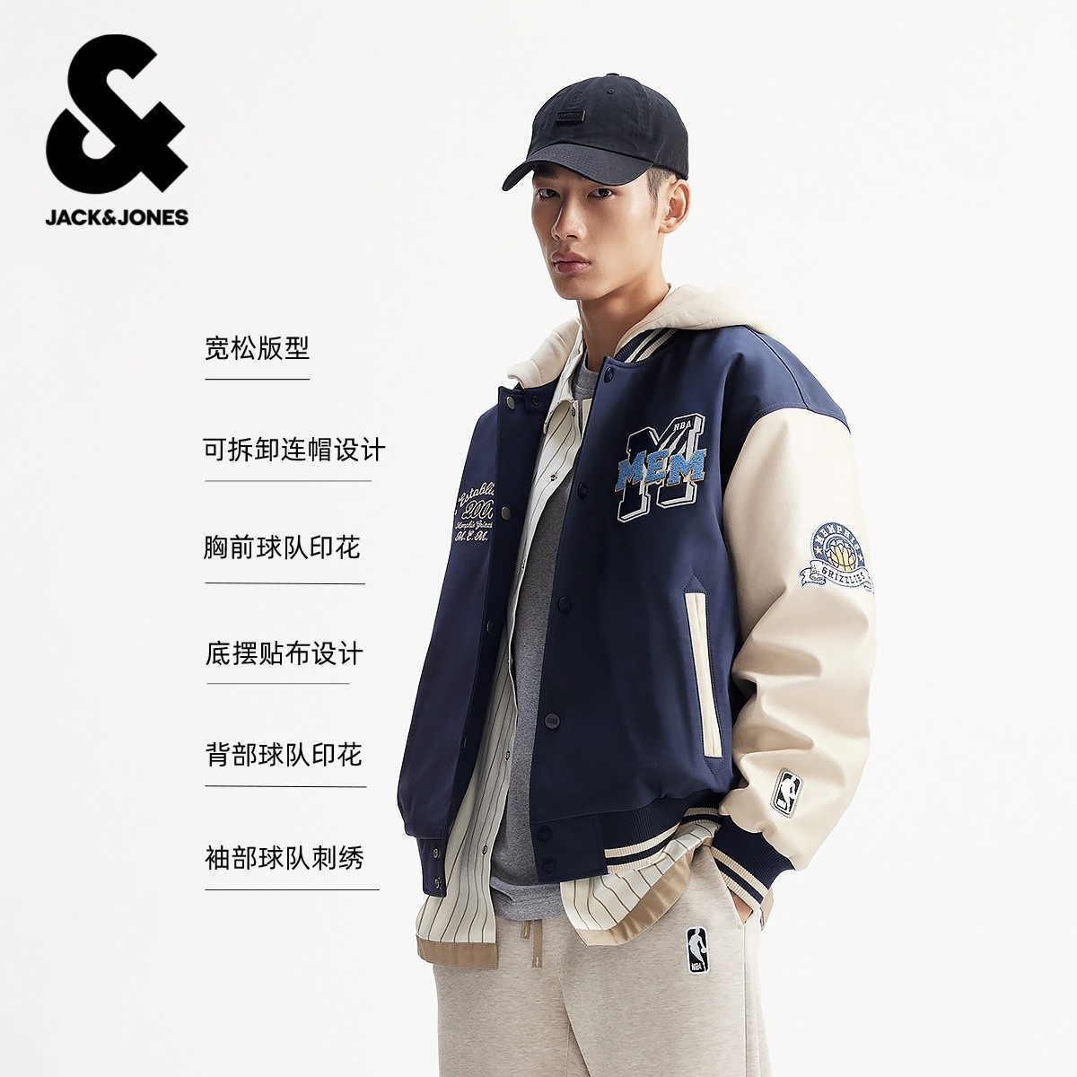 宽松连帽棉服棉衣休闲外套 男装 绫致杰克琼斯NBA联名2026春季 新款