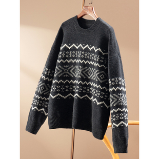高级感上衣宽松打底针织衫 圆领100%纯山羊绒衫 女高端毛衣秋冬新款