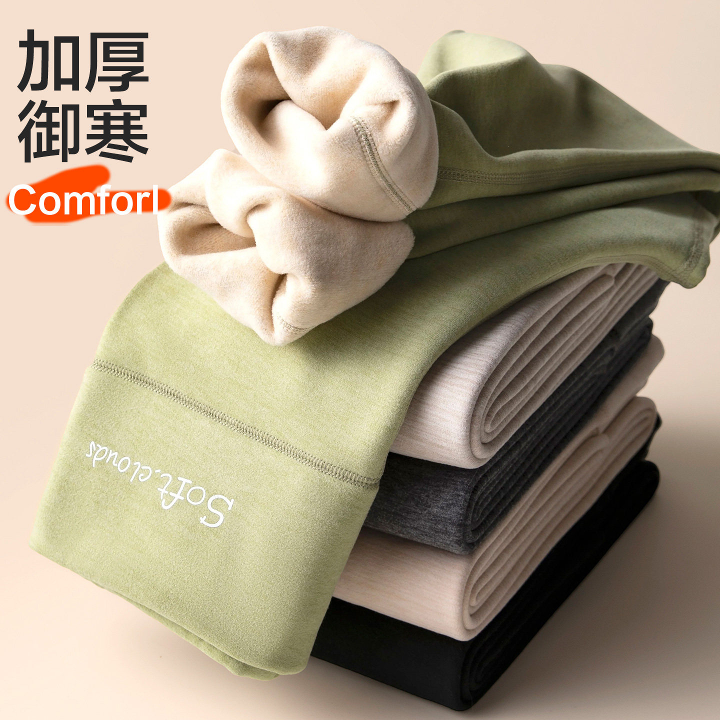 高腰保暖裤 德绒秋裤 胖mm羊毛蚕丝打底裤 加绒加厚加肥加大码 女冬季