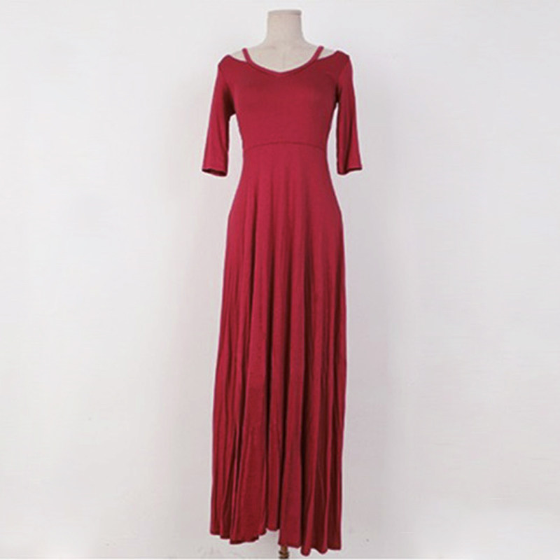 女 5分袖 韩版 新款 低胸镂空大摆超长拖地连衣裙 2020夏季 藤堂家大码