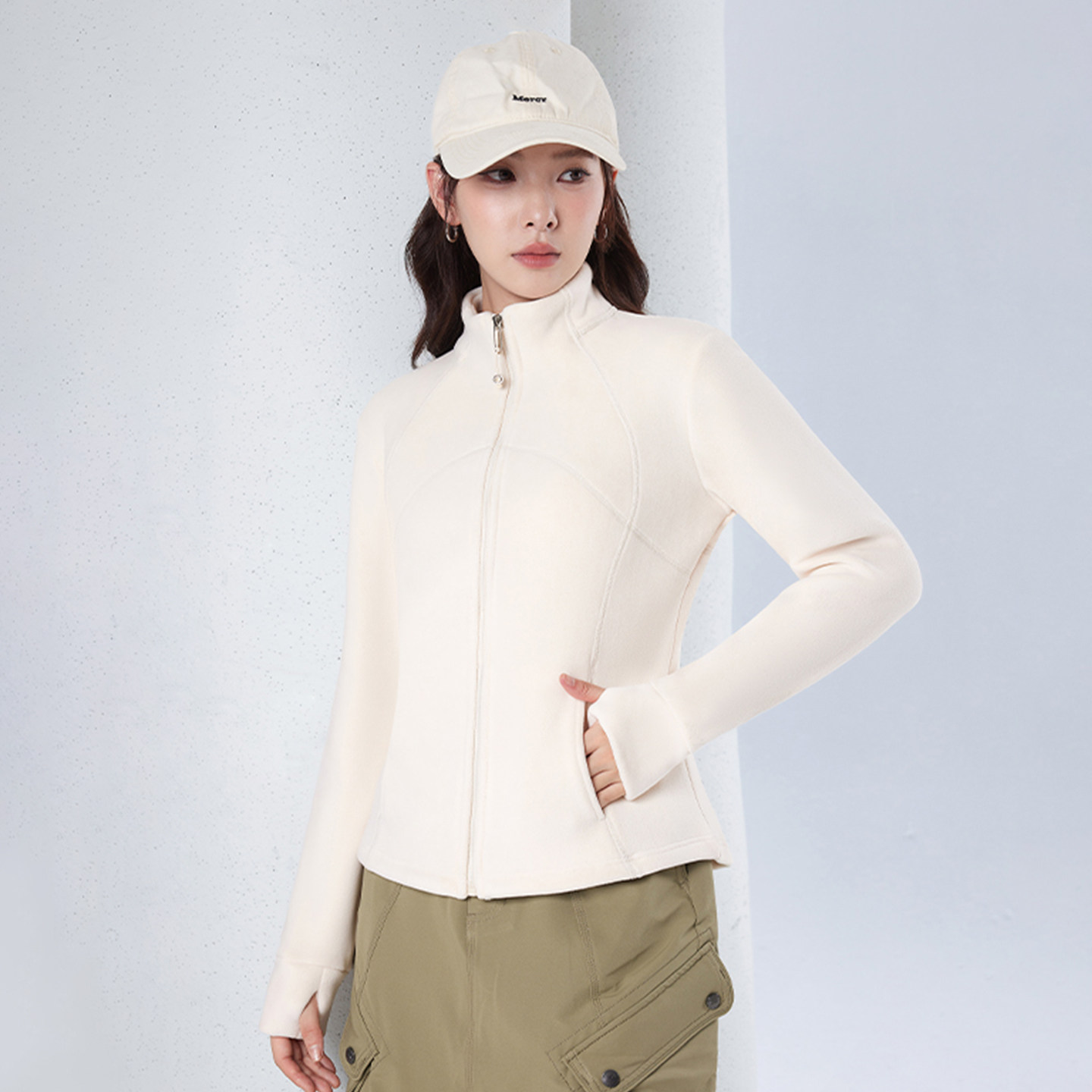 2025加绒双面奥摇粒绒卫衣外套女秋冬款 冲锋衣内胆瑜伽服 立领修身
